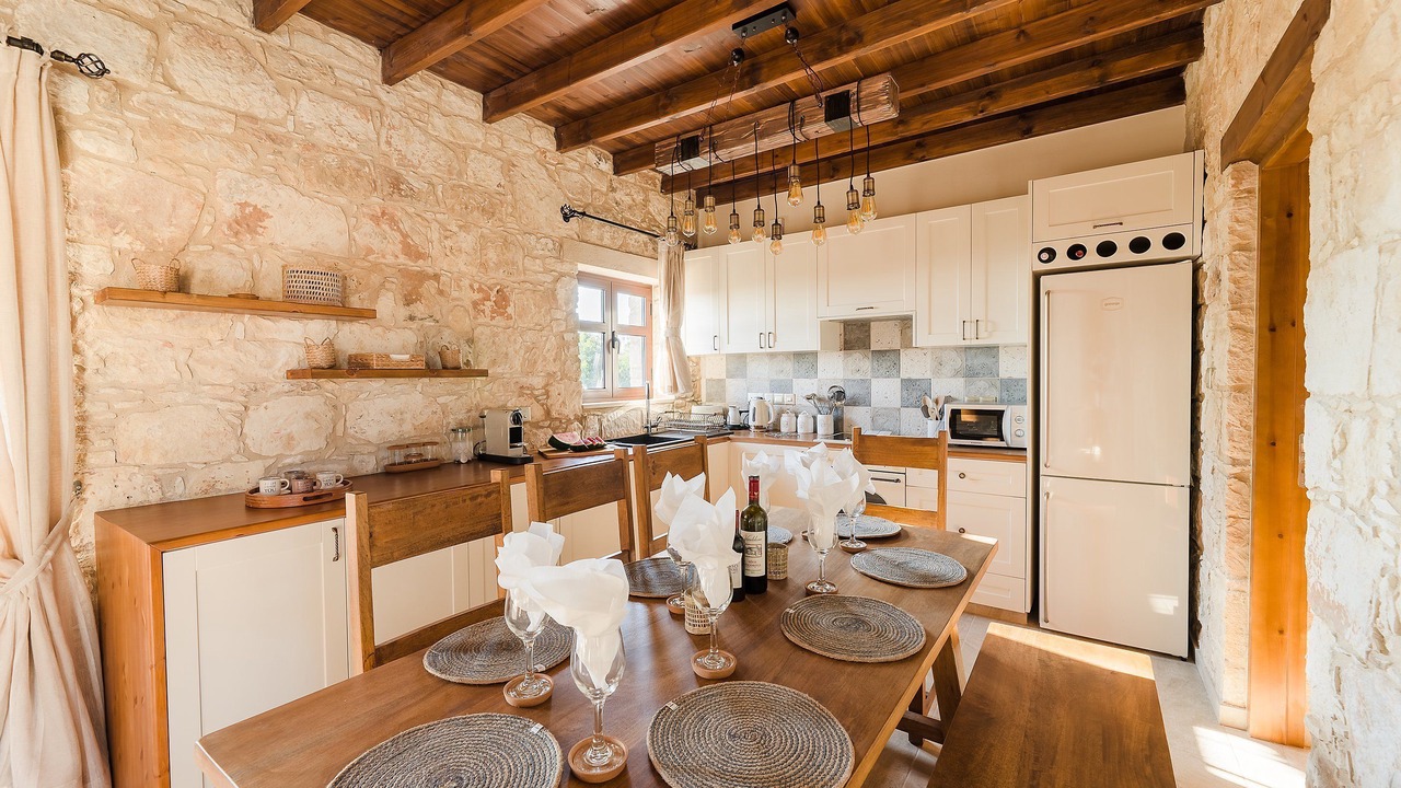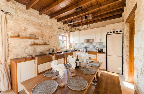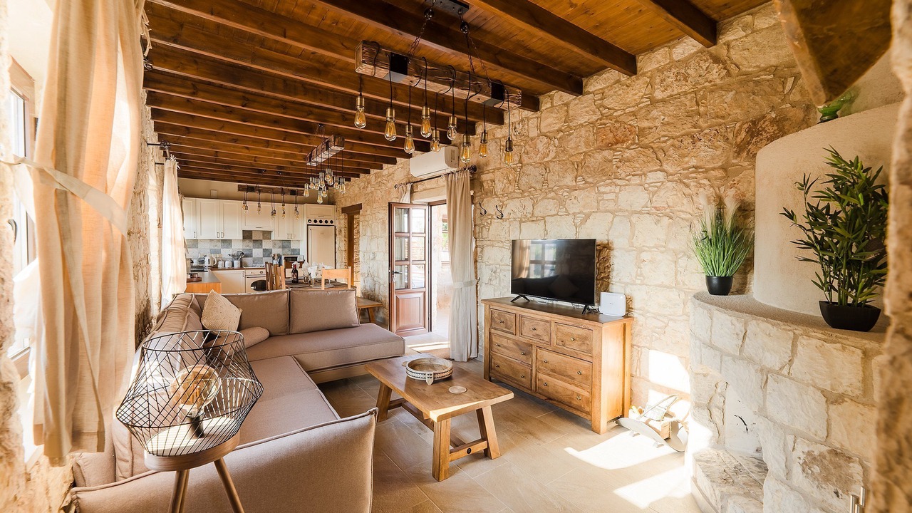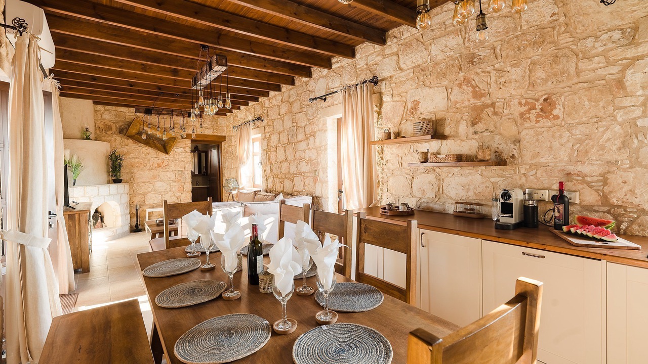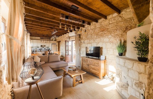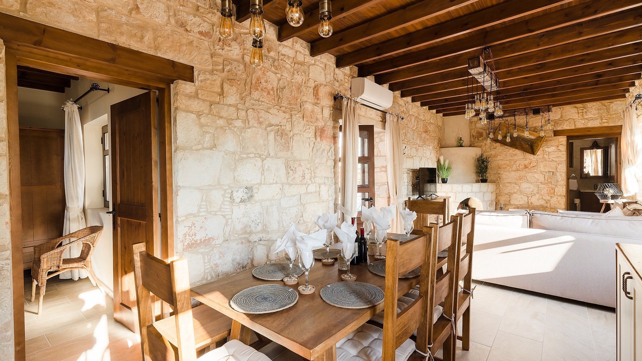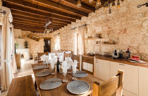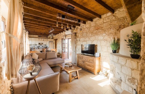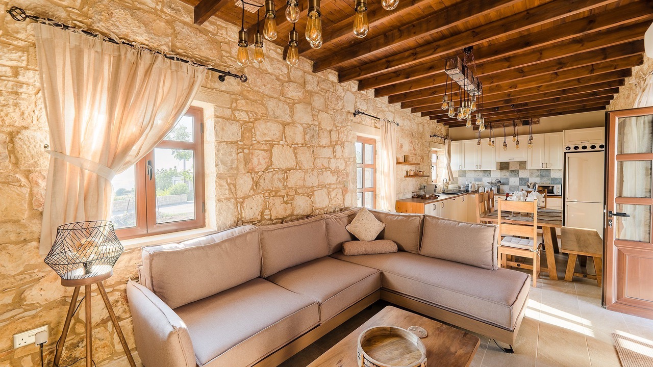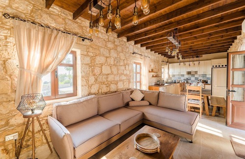 Anastasia's House in Kathikas features wood beamed ceilings, stone floors and the perfect blend of contemporary and traditional features throughout. Modern conveniences include air conditioning, fitted kitchen with appliances including dishwasher, washing machine, Smeg oven and accessories (including Nespresso machine). The open plan living area includes chunky corner sofa, satellite TV and an open fire for cooler off-season evenings.