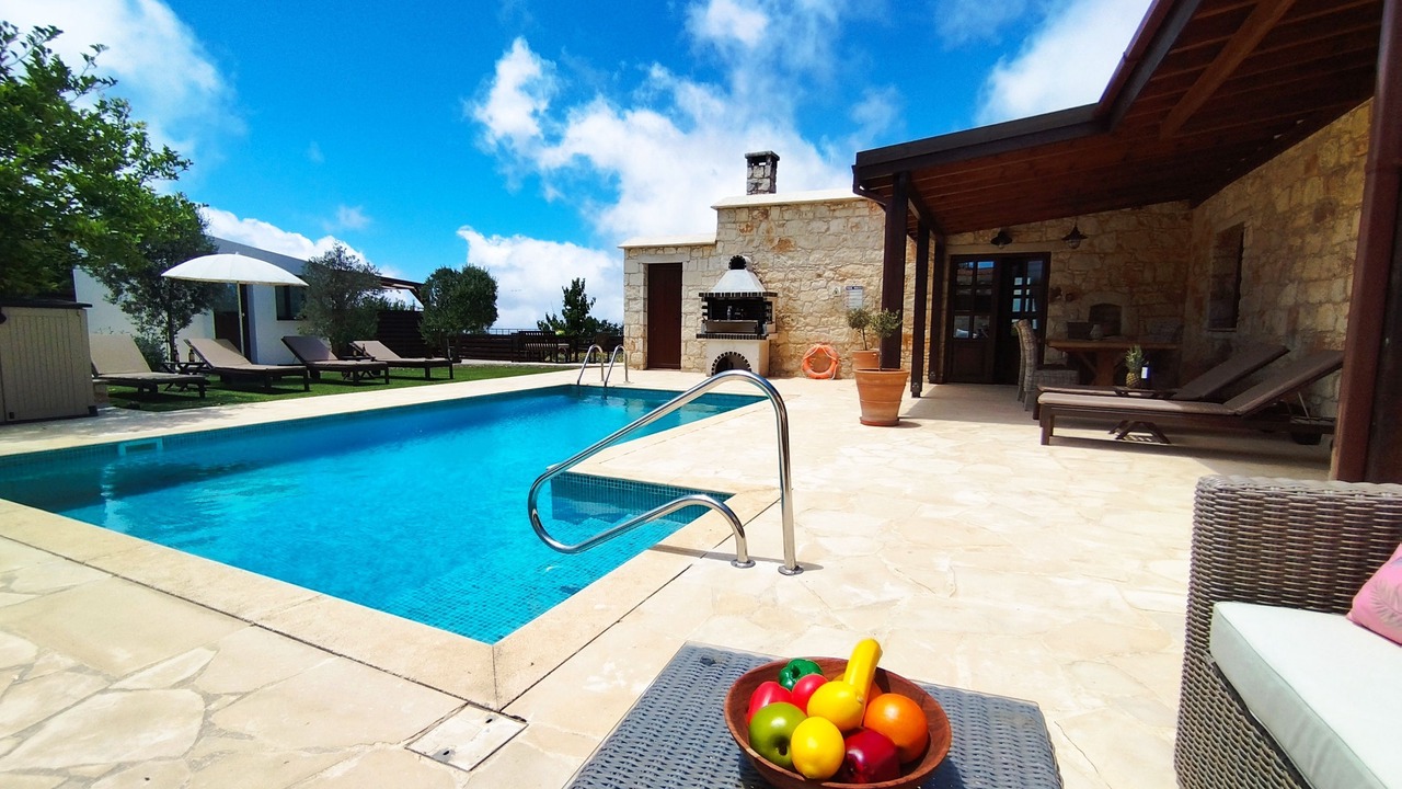 Anastasia's House in Kathikas' design and construction keeps the villa cool in the summer and open log fire keeps it warm in the winter, making it ideal for wonderful family holidays summer and winter.