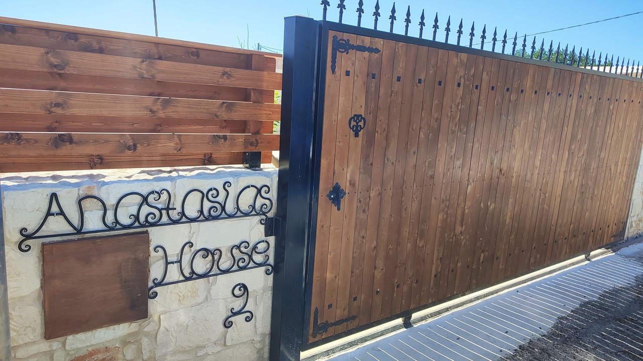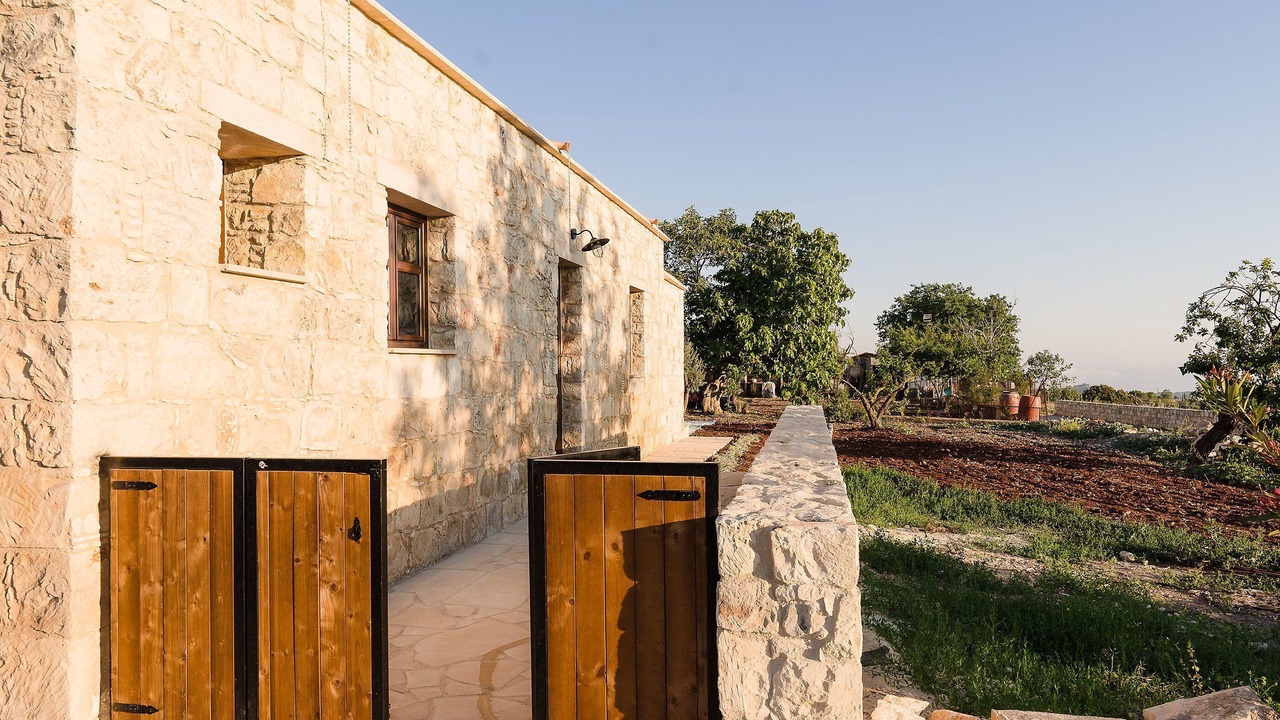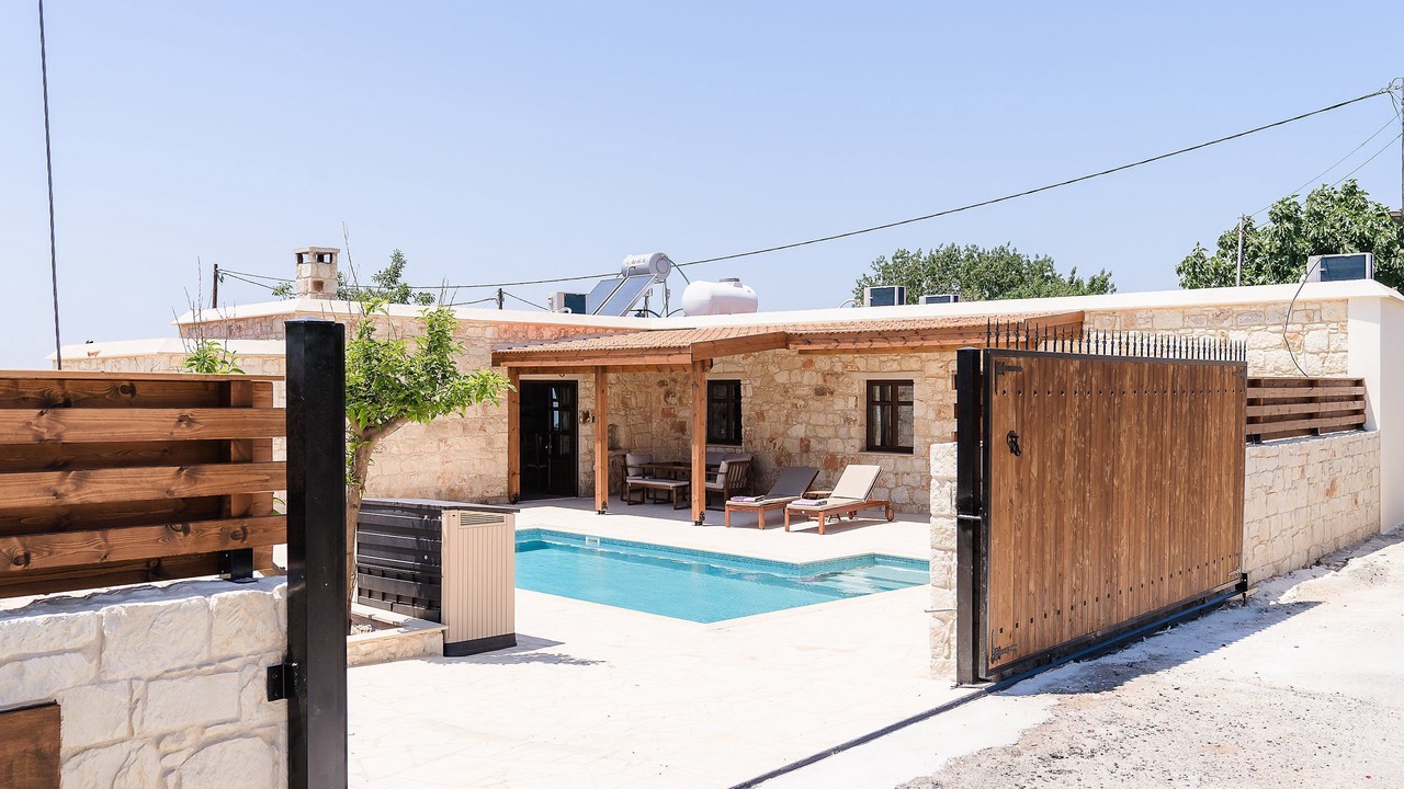 Anastasia's House has large wooden gates opening from the road into the villa's charming Cypriot enclosed courtyard and private pool.