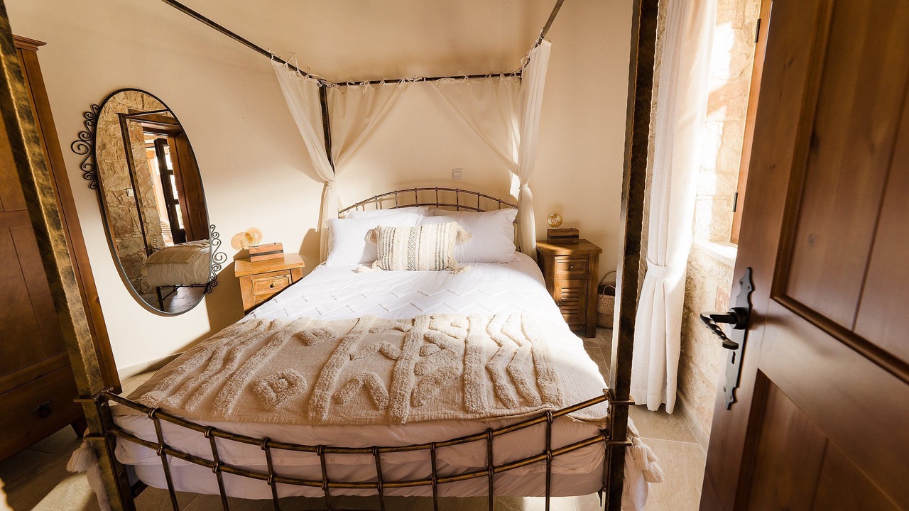 Anastasia's house is built with stone and clay, it is elegantly decorated in earth tones and wooden furniture in warm colours.