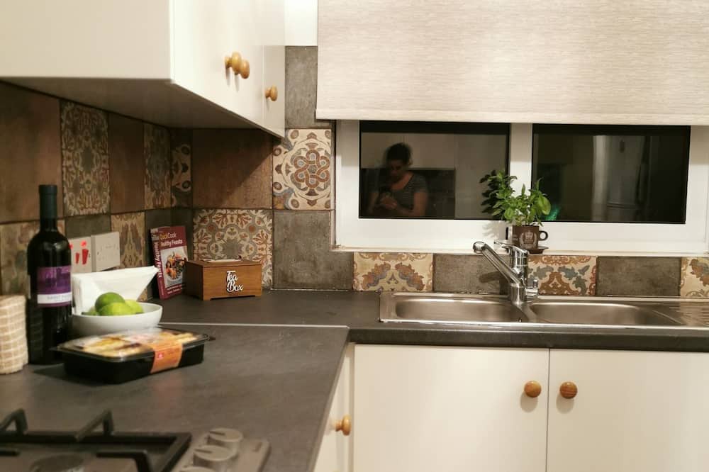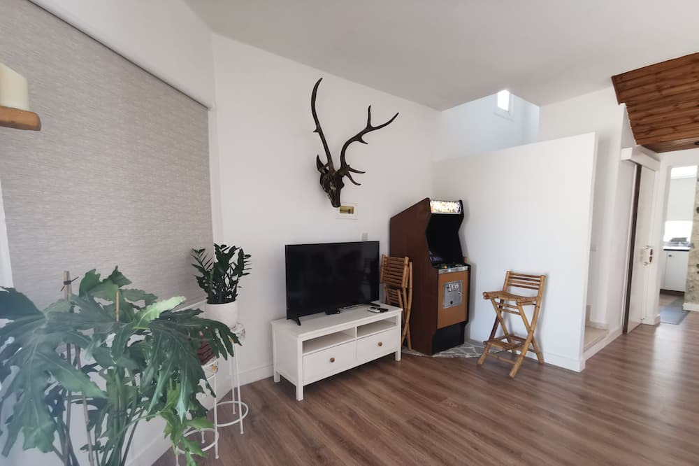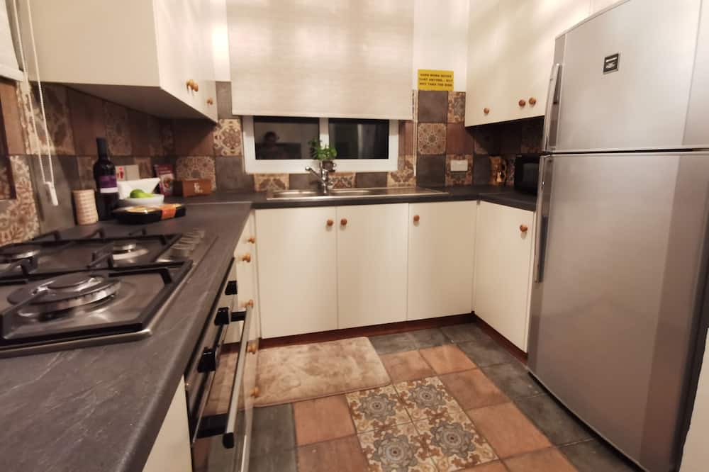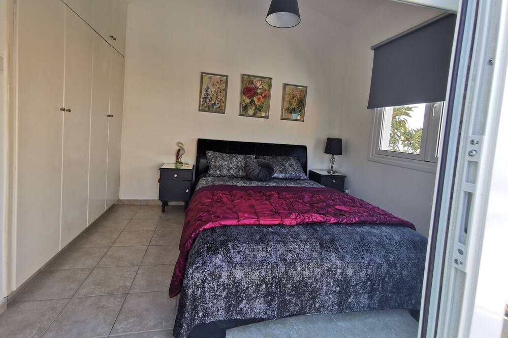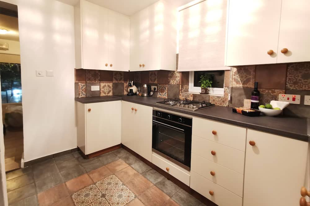 Soak up this modern and vintage style, newly renovated and remodelled beach house to suit your summer or winter holidays. Enjoy the original art work and retro style pieces complementing the interior. Sitting in the yard and the patio you can smell the strong and distinct aromas from the botanical plants enjoying the sound of the waves while relaxing in the serene and silent atmosphere. Just 1 minute walk to one of the best beaches in Larnaca with a small beach bar and sunbeds. It consists of two bedroom, one with king-size bed and another with 2 single beds. Both bedrooms with balconies. Downstairs you will find a fully equipped kitchen with all the modern amenities and a large living room with large corner sofa which sleeps another person if needed.