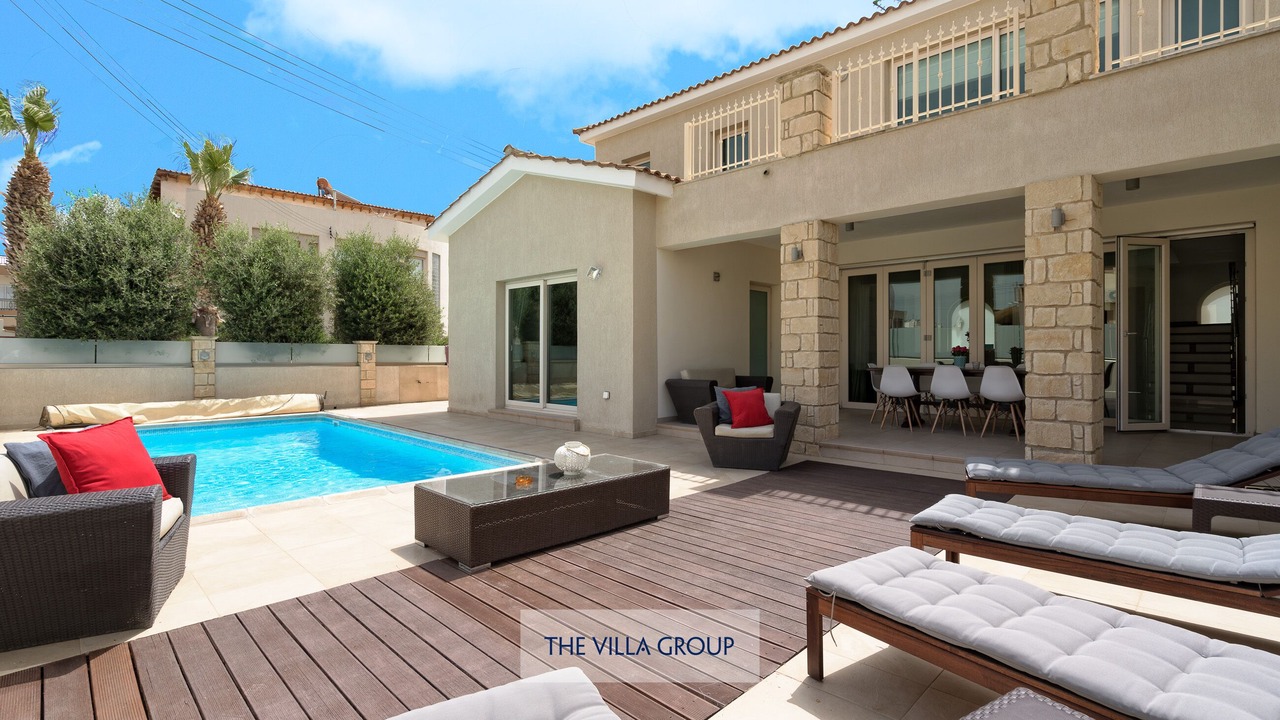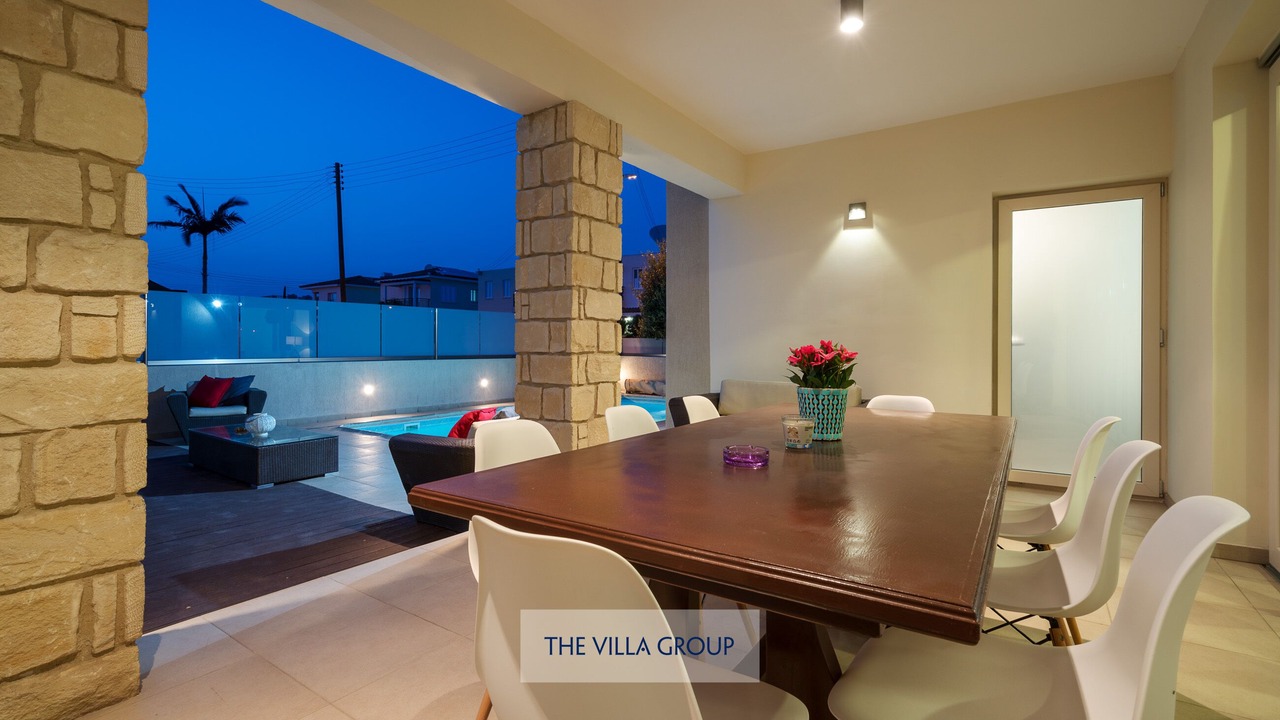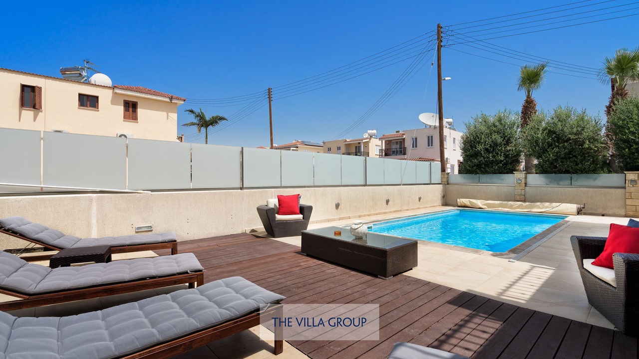 A beautiful 6-bedroom villa located in the popular area of Universal being ideal for families and large groups wishing to holiday together. The villa is located within walking distance of amenities and a regular bus service operating to Paphos Town, Kato Paphos Harbour, the beach and hotels, shops and restaurants etc.