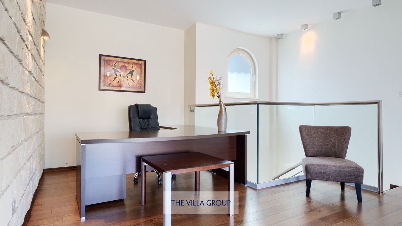 The villa has the luxury of a further spacious living area located on the first floor. This area has sofas, internet TV, an office space, kitchen with oven and fridge/freezer. The remaining bedrooms for the villa are located on this floor; a double bedroom with en-suite shower room and a family suite consisting of a twin bedroom and adjacent double bedroom with en-suite shower room.
