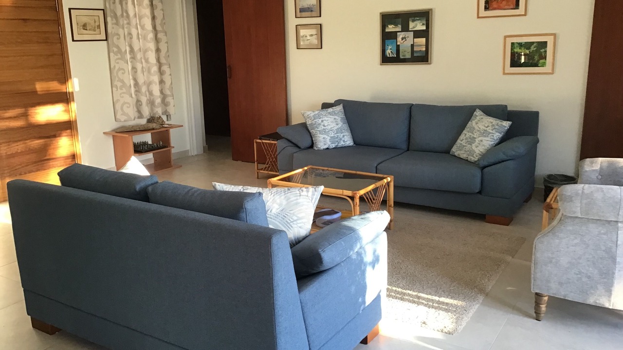 The villa is spacious and well equipped with Internet access, with a TV and Minix box that allows you to access UK TV and a large range of films and TV series.. There is also a radio/ CD player and a variety of games. We for years did not include a TV as our own boys after some resistance really enjoyed playing games! The living room is large and has two sets of sliding French windows that open onto a large patio, well shaded by grapevine and bougainvilia. The bedrooms and bathrooms are well designed for comfort and privacy as they are separated from the living room with wooden sliding doors, making it possible during the hot summer months, to keep them cool whilst still being able to move freely from the lounge to the patio.