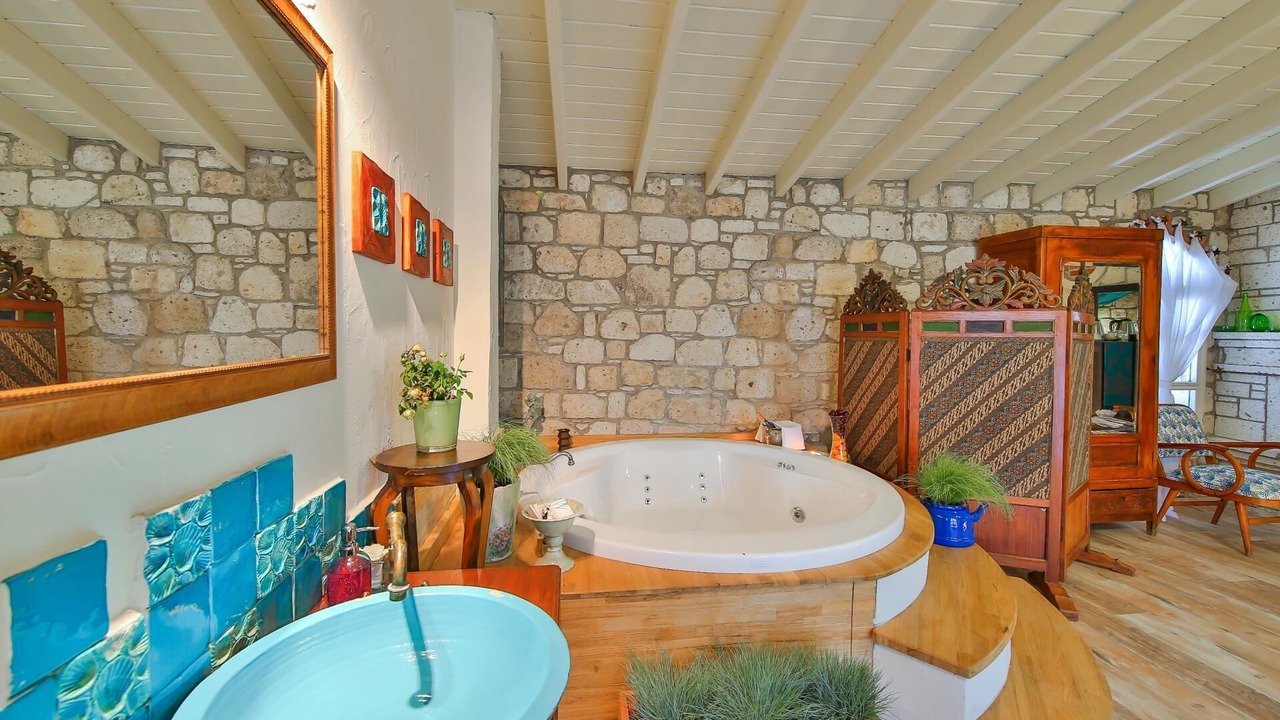 There are a total of 13 rooms in Cyprus Cumbalı Konak, which we have made using Kyrenia architecture and which we have been serving for 12 months, 3 of which are in the form of a cuvette. And besides our peaceful garden integrated with small lush green, geranium, bougainvillea and lavender scents, of course the village breakfast with organic, homemade products ...