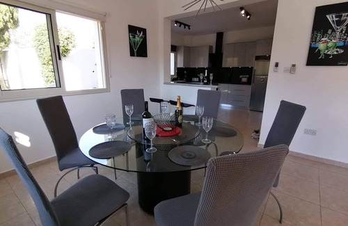 We really are in the BEST LOCATION in Tala, an easy 8 minutes walk or 1 min drive to the Tavernas in Tala square and great uninterrupted views over the paphos coast. The villa is not on a large estate as per others on the this site but by itself with just a couple of villas to your right and the next door villa is only occupied in august ( a lovely Cypriot family who will make you very welcome) so you will have a very quiet and private stay.