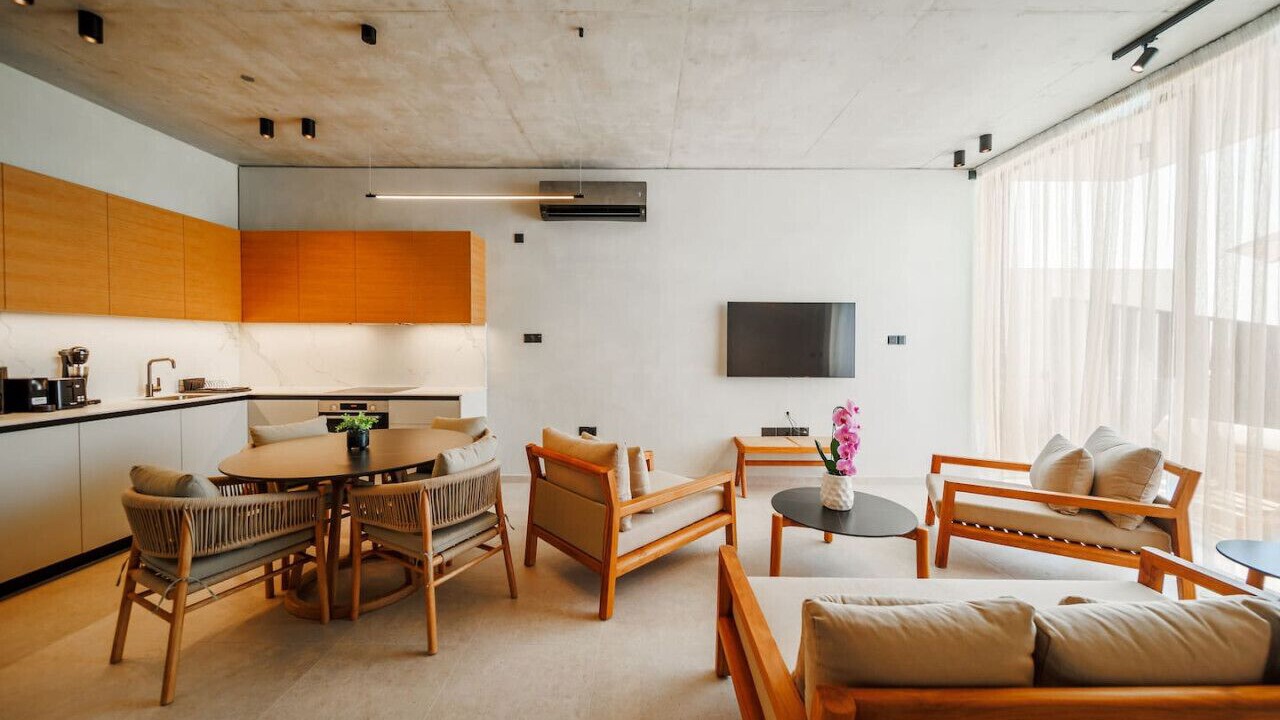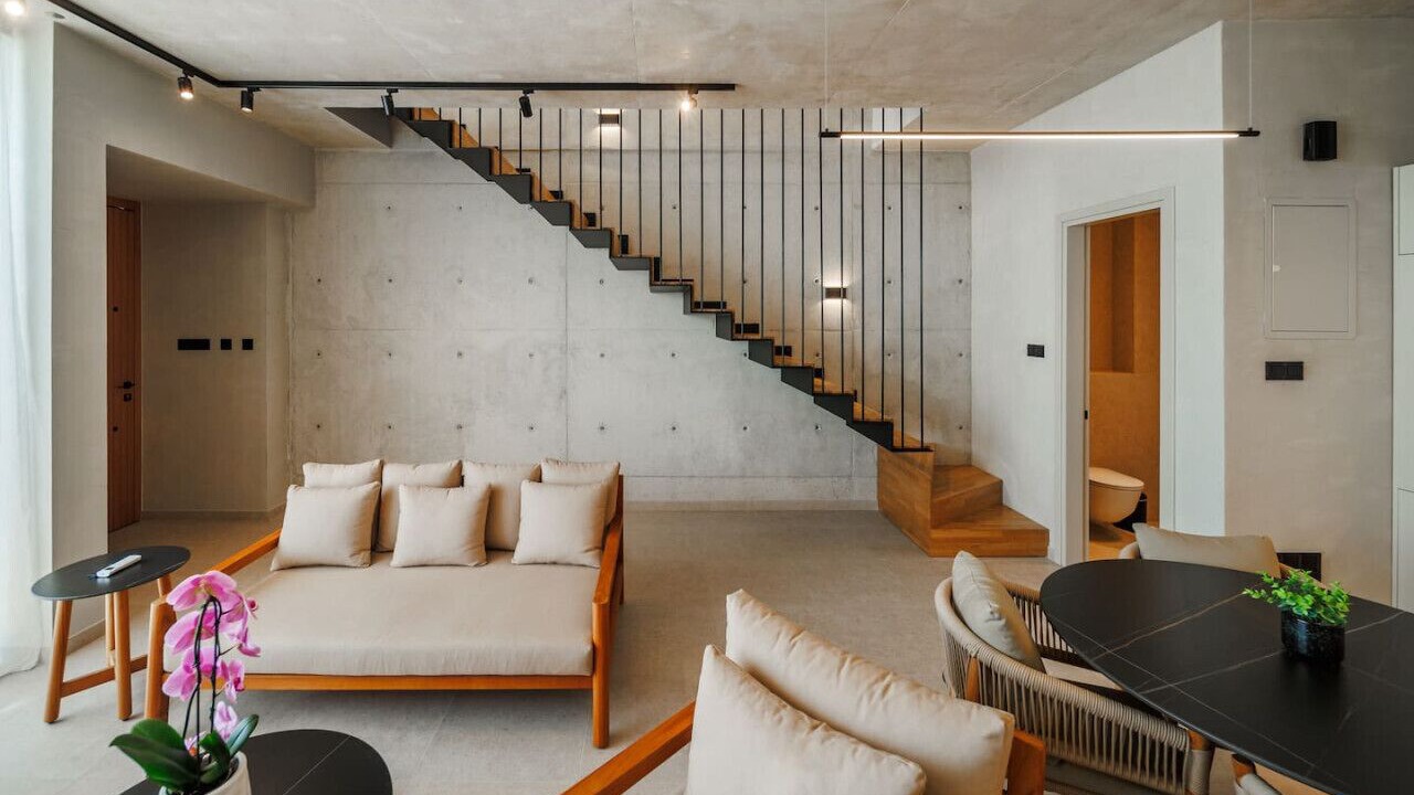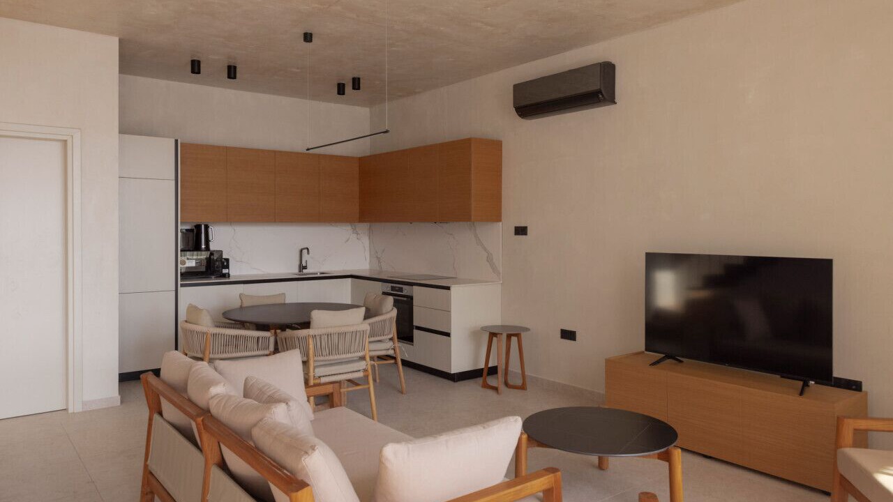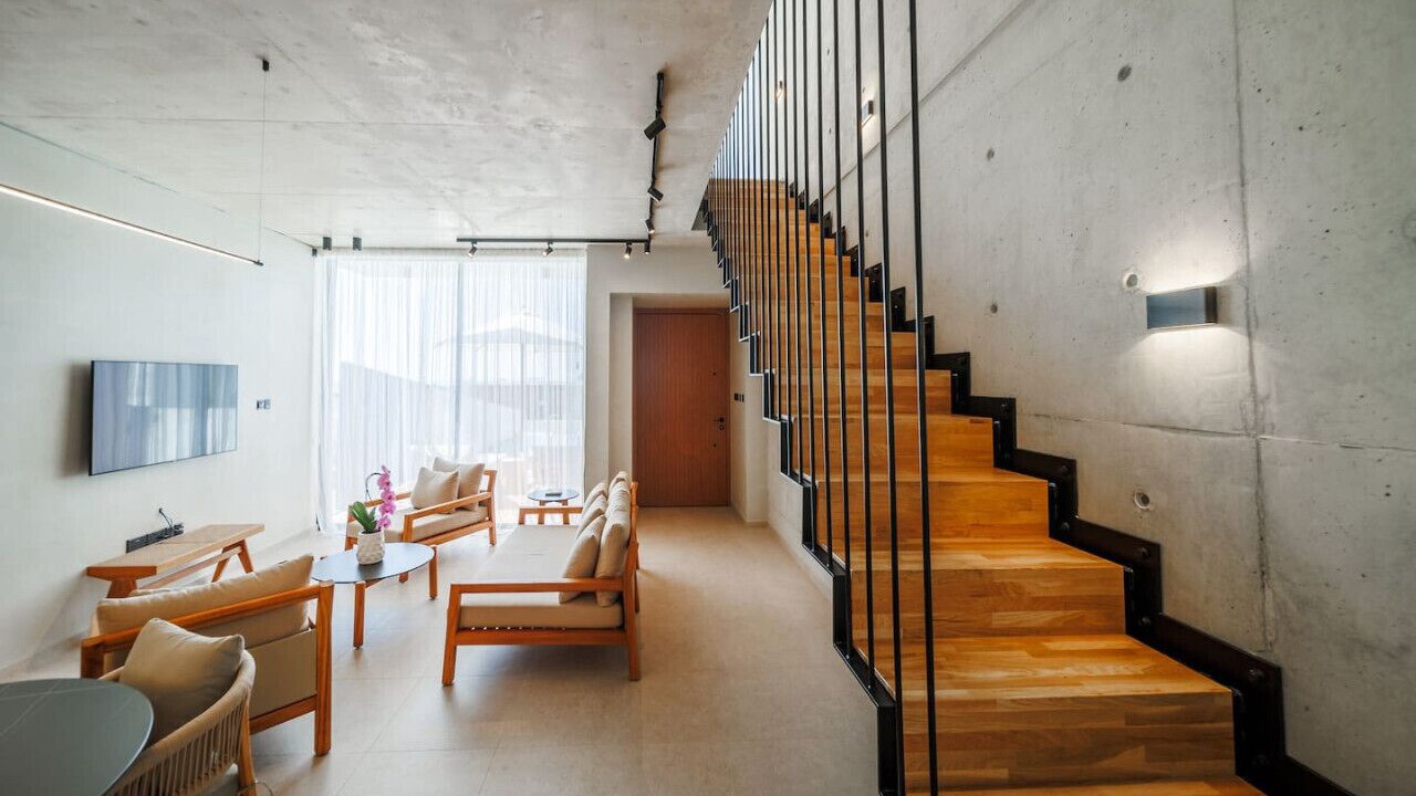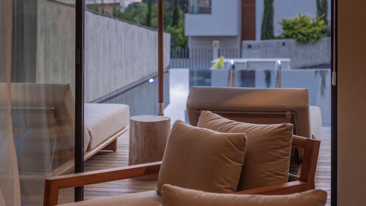 Furnished with modern elegance, the villa guarantees a comfortable and luxurious experience. Large windows in the bright rooms allow ample natural light and showcase magnificent views of the sea. Blinds and full-length curtains ensure privacy and darkness for a peaceful night’s sleep.