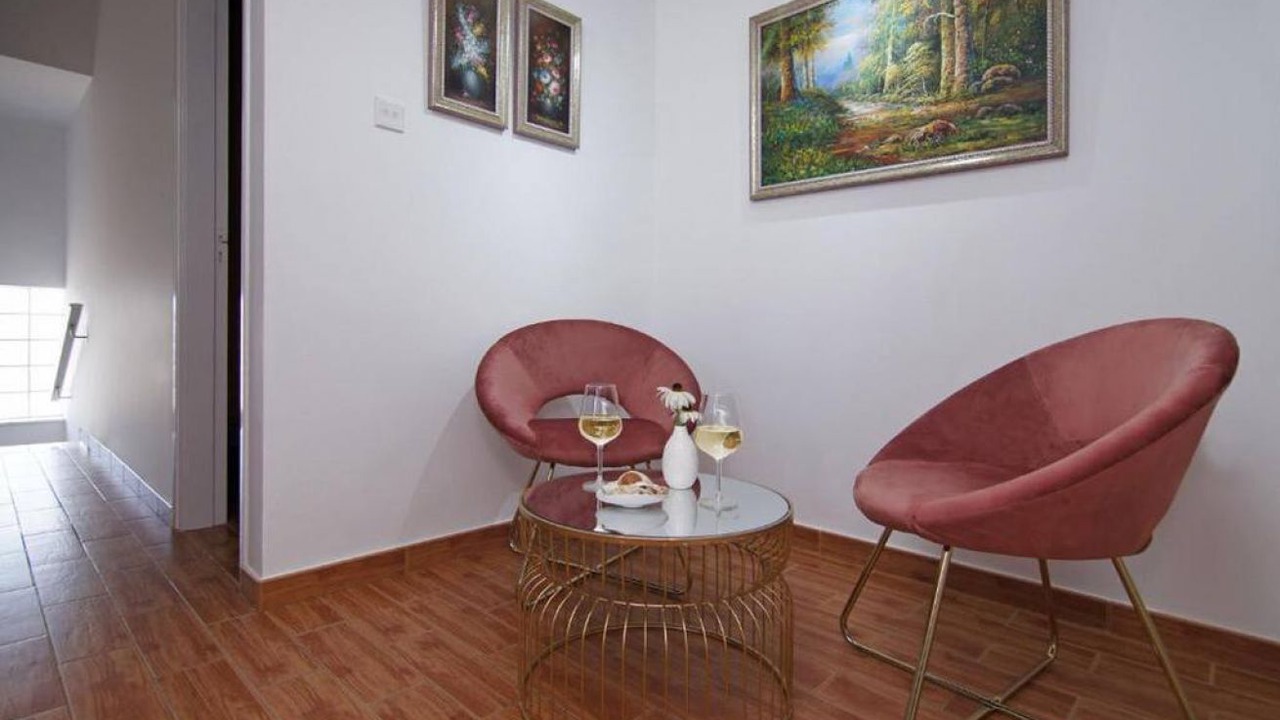 The ground floor incorporates a generously proportioned and fully equipped kitchen and welcoming living and dining room with direct access to the outdoor area. The first floor also features an ample double bedroom.