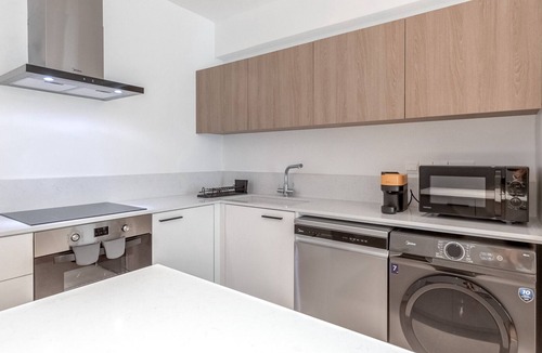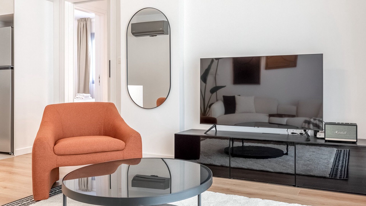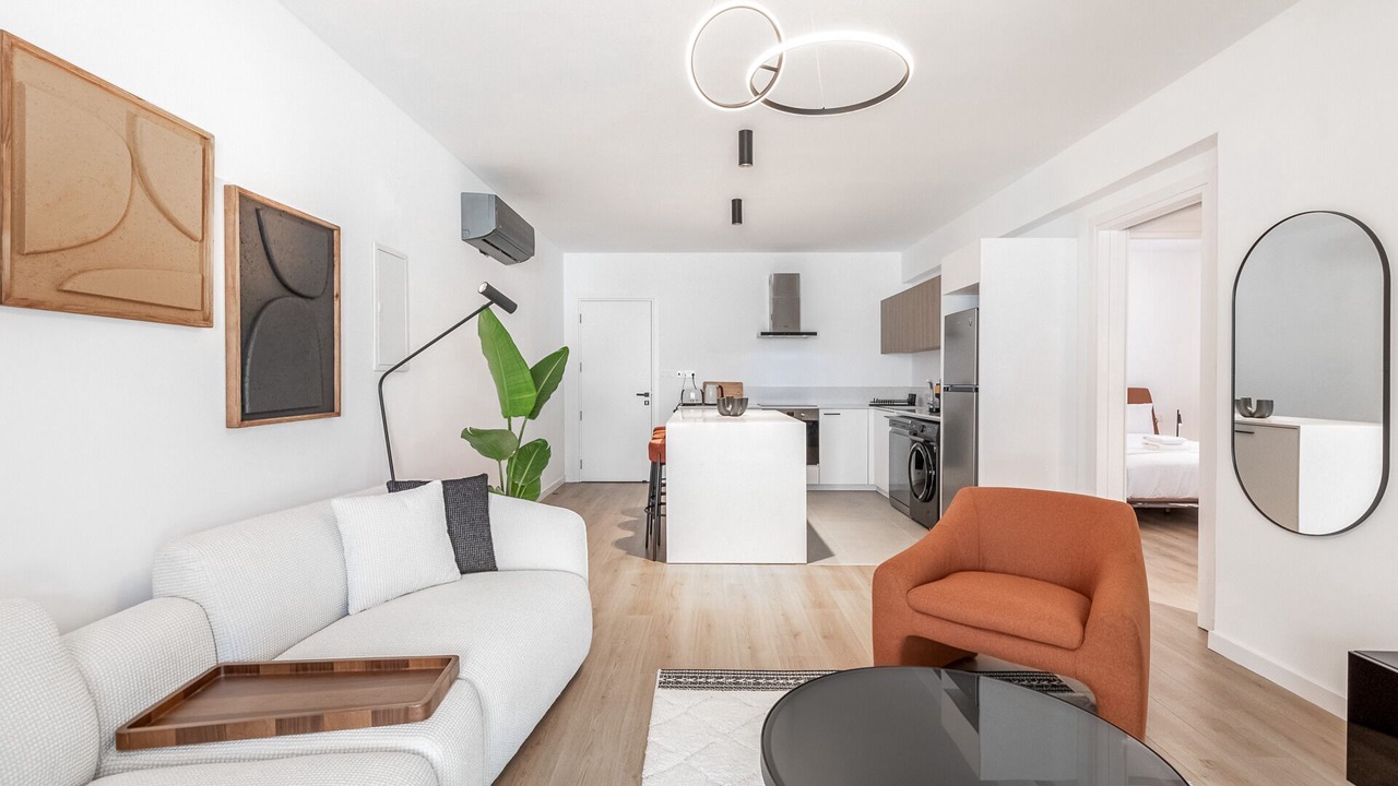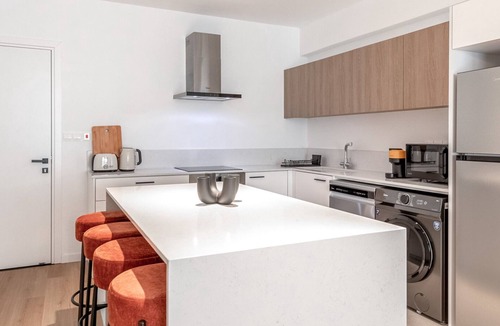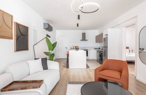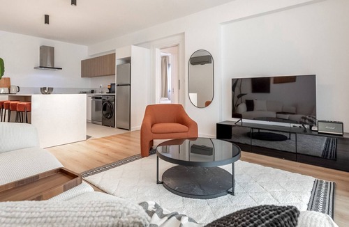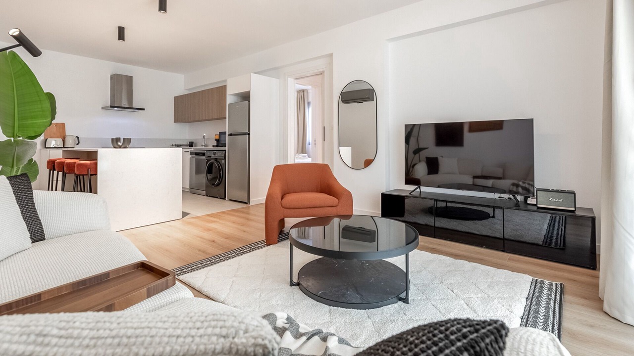 Spacious modern living: Our 2-bedroom apartment in Paphos offers a generous living space with premium amenities like a Marshall speaker system and Nespresso machine to enhance your comfort.