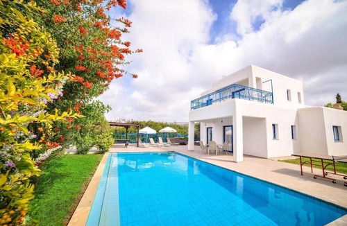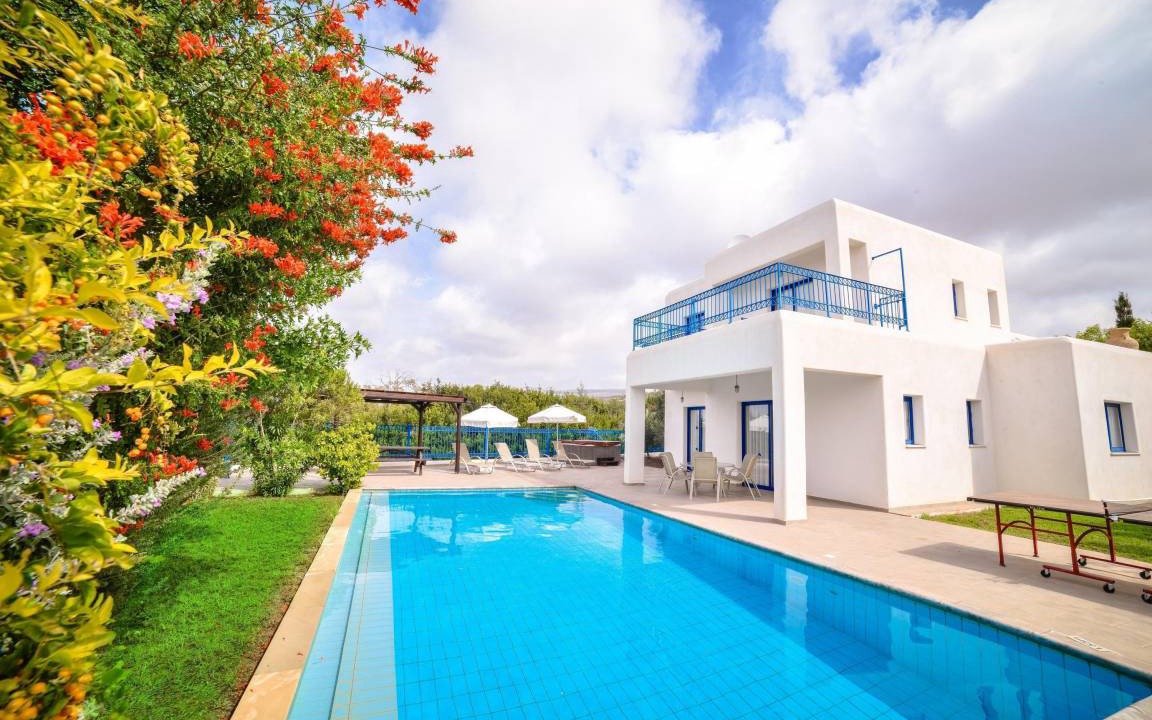 Agios Georgios has a quiet little pebbled beach and traditional fish restaurants. In the north there is the nature reserve and the Akamas peninsula. There is a local doctor on call, as well as a communal children's playground and a private chapel. You can go snorkeling, on boat tours, go-karting, bowling or visit the bird park nearby. The popular coral bay is 4km from the accommodation and its shops, bars and restaurants invite you to pay a visit. Please note: the photos are representative examples. The design of your villa may vary slightly.