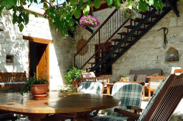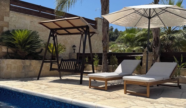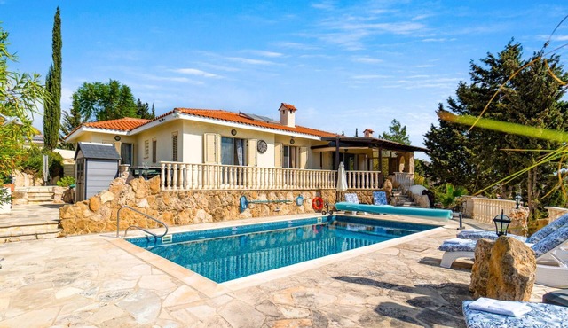 Traditional wood and stone-built Narkissos villa is situated in Kallepia village, just 13 km from Paphos city. It features a private outdoor swimming pool, free private parking and a stone-paved courtyard surrounded by trees. This 2-storey accommodation is fitted with wooden beam ceilings and four poster canopy beds. It offers 2 open-plan living and dining areas with fireplaces, 2 fully equipped kitchens, 3 bathrooms and 5 bedrooms. Some bedrooms feature balconies that lead to a furnished roof terrace. It also includes a satellite TV and DVD player. Free barbecue facilities are available in the courtyard which is furnished with sunbeds, patio chairs and tables. Various restaurants and mini markets are 500 metres away. Narkissos Villa is 20 km from Latsi beach and Coral Bay. It is 28 km away from Paphos Airport and 136 km from Larnaca Airport. Tsada Golf Course is 2 km away and guests can access wineries within a 5-minute drive.