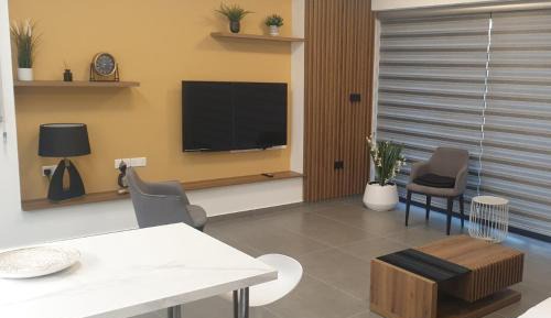New Smart Living-1 Bedroom Aglantzia, Nicosia offers accommodations in Aglantzia, 2.2 miles from Ministry of Energy, Commerce, Industry, and Tourism – Nicosia and 2.3 miles from Liberty Monument. The air-conditioned accommodation is 1.2 miles from Filoxenia Conference Centre, and guests can benefit from on-site private parking and complimentary Wifi. The accommodation offers an elevator and private check-in and check-out for guests. Offering a balcony and city views, the spacious apartment includes 1 bedroom, a living room, satellite flat-screen TV, an equipped kitchen, and 1 bathroom with an a bath or shower. Towels and bed linen are offered in the apartment. The property has an outdoor dining area. Ministry of Education and Culture – Nicosia is 2.3 miles from the apartment, while Ministry of Justice and Public Order – Nicosia is 2.5 miles from the property.