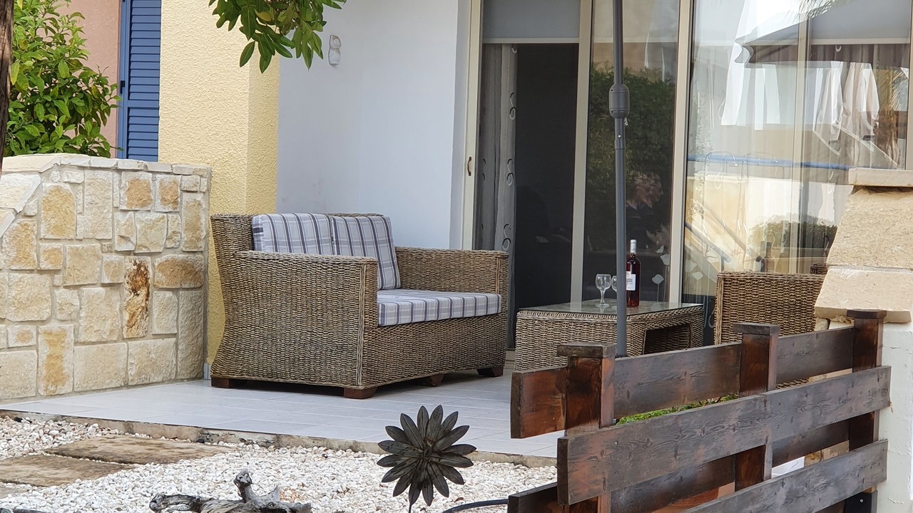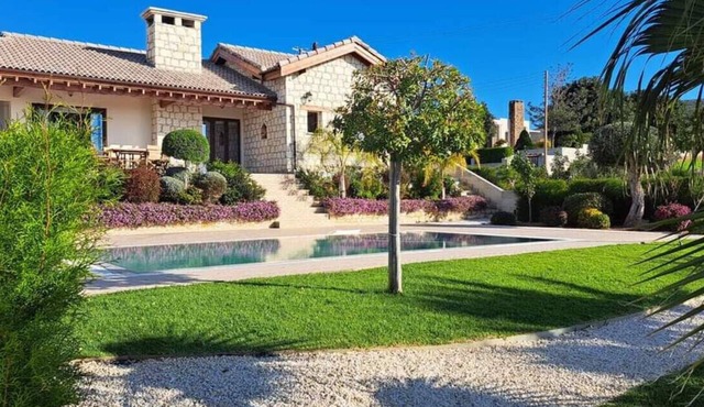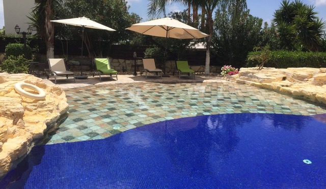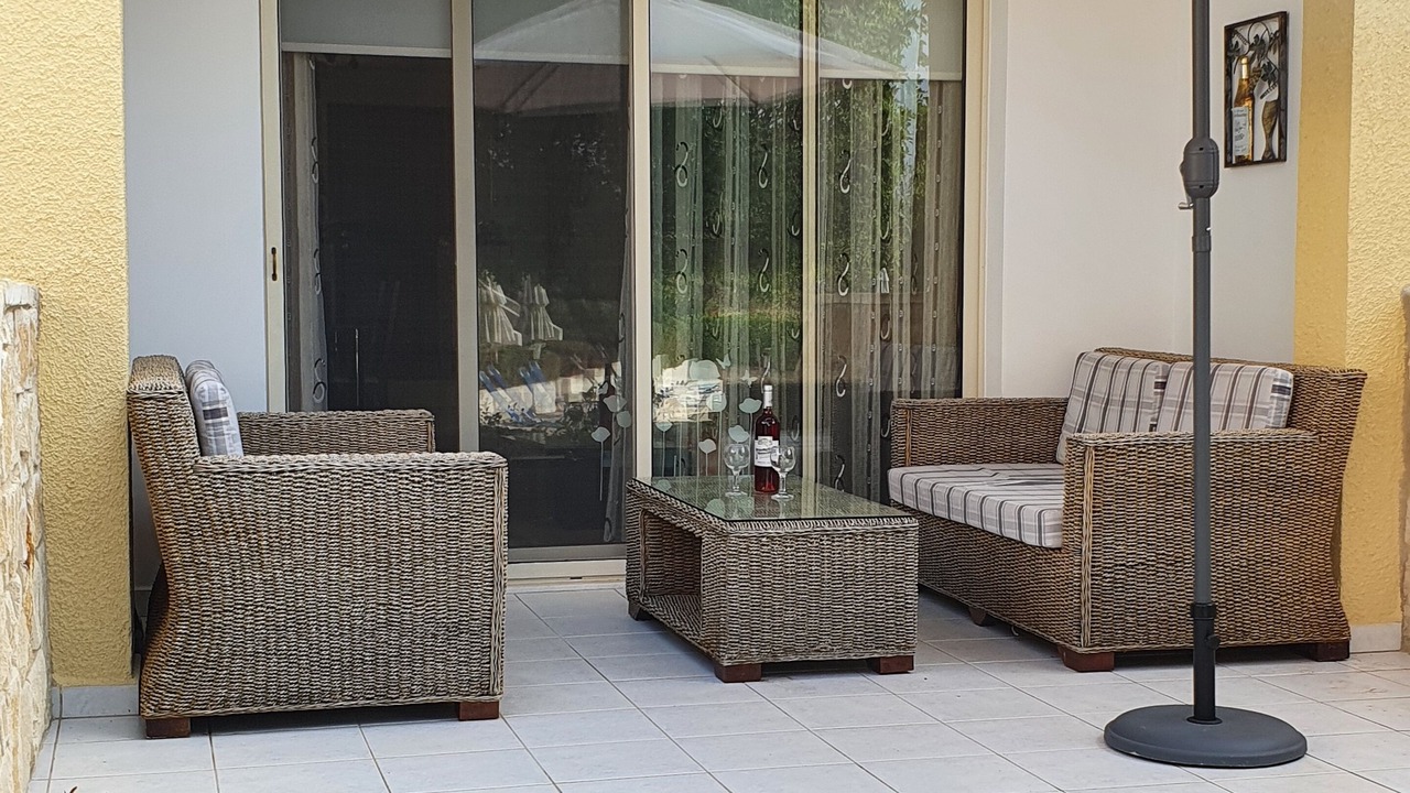 Our place in the sun in Anarita (8 mins from the airport), a village in the Paphos region. The motorway linking Paphos, Larnaca, Limassol and Nicosia is 5 minutes away. For exploring the beautiful country of Cyprus, especially the Troodos Mountains, a car is advisable (we can recommend a car rental company). The house is furnished to a high standard, with a balcony off the main bedroom and an outside patio with a small garden opening on to one of the three communal pools.