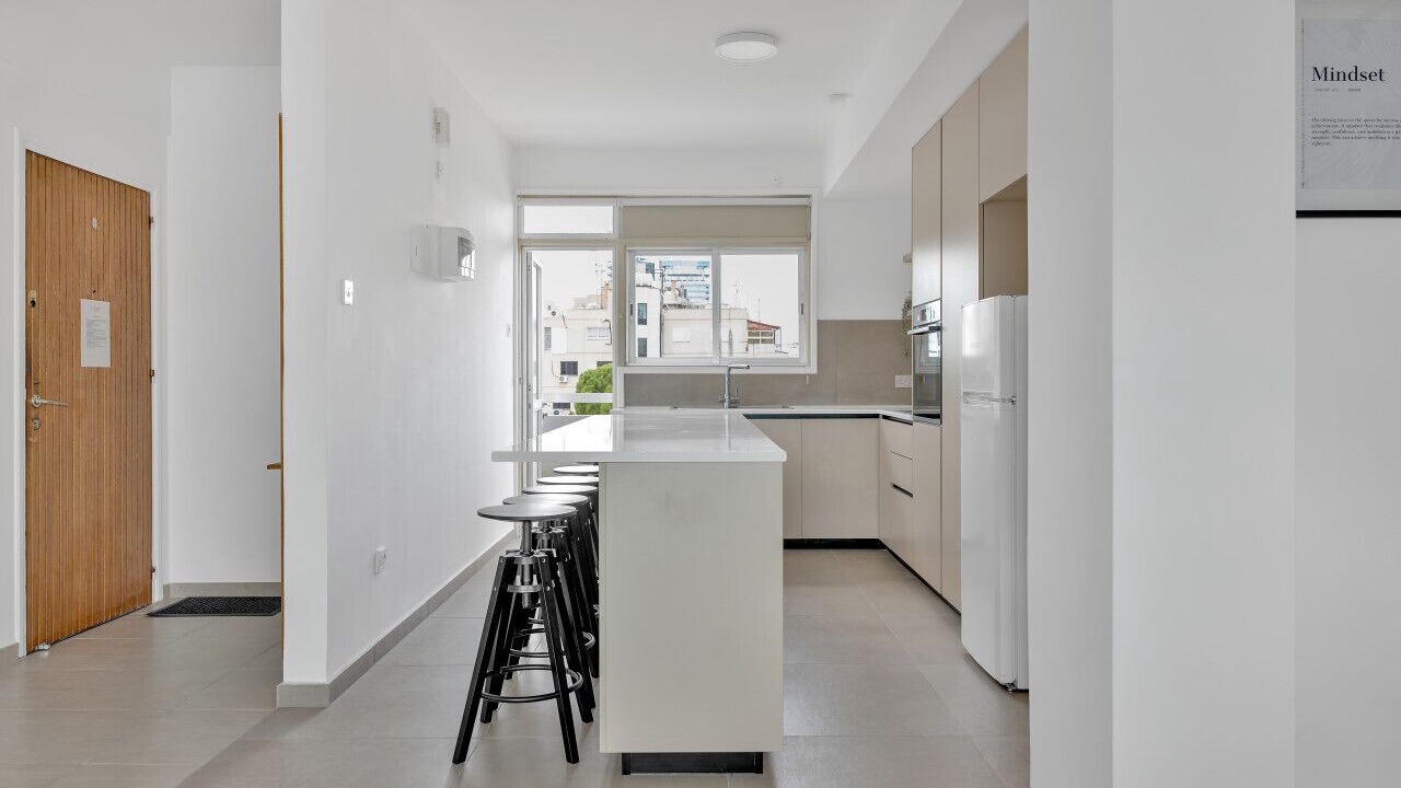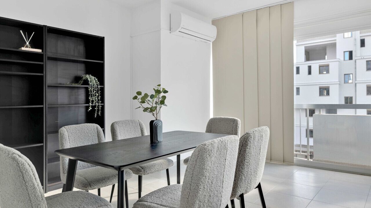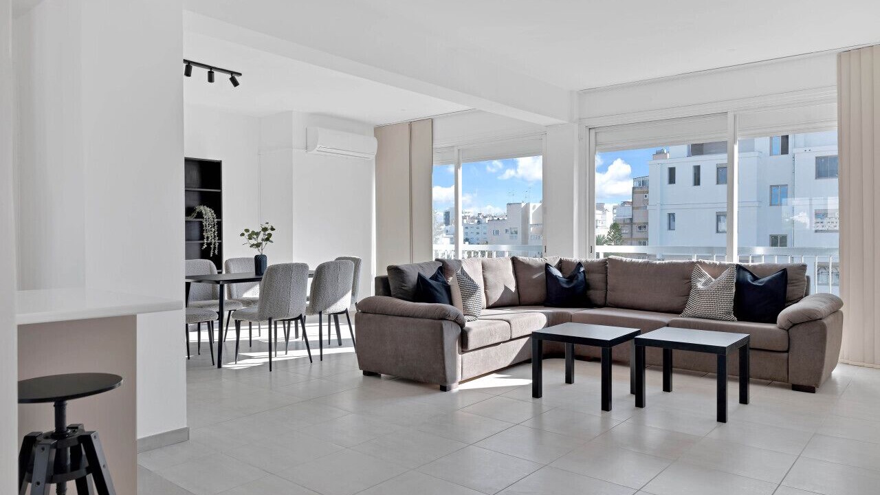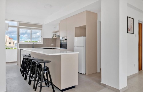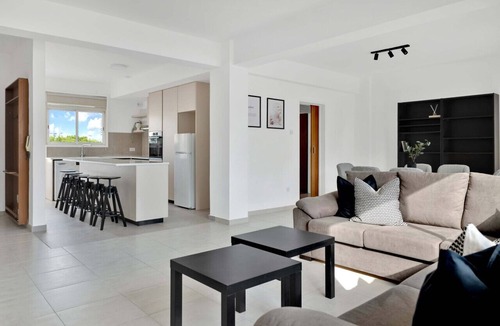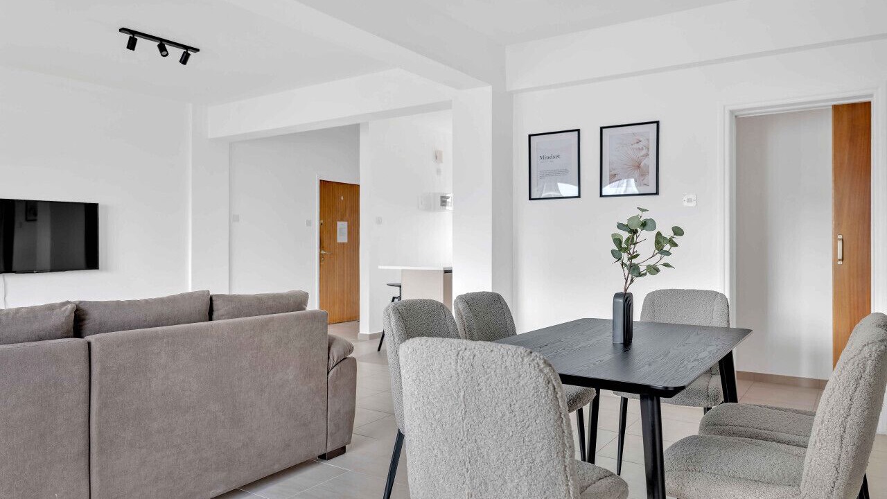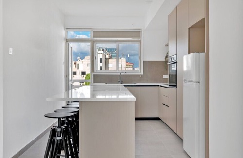 Introducing Romanou Modern City Center Flat, a contemporary haven nestled in the vibrant heart of Nicosia. Step inside this exquisite property to discover an inviting open-plan layout, boasting a sleek, brand-new modern kitchen replete with top-of-the-line amenities including a breakfast bar with accompanying stools. The spacious living area is adorned with a plush, comfortable couch and a generously-sized smart TV, perfect for unwinding after a day of exploring the city. Entertain guests effortlessly at the six-seater dining table, all while soaking in the panoramic city views from the balcony that seamlessly extends from the living to the dining area. A well-appointed corridor off the kitchen leads to convenient facilities, including a guest WC and a main bathroom complete with a bath tub and shower head. This charming flat comprises three thoughtfully designed bedrooms: two double rooms and one twin room, ensuring ample space and comfort for a relaxing stay. Ideally situated just 7 kilometers from the Mall of Cyprus and a mere 2 kilometers from the renowned Ledras Street, this property is centrally located amid a vibrant neighborhood bustling with an array of restaurants and bars within easy reach. Experience the convenience and allure of city living while indulging in the comfort and modernity of Romanou Modern City Center Flat.