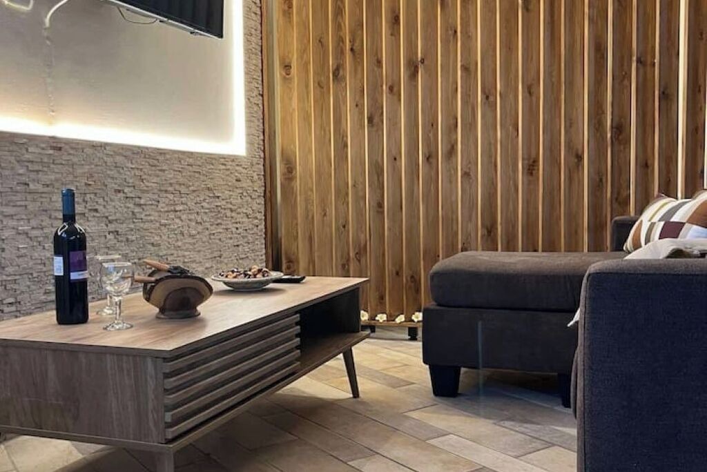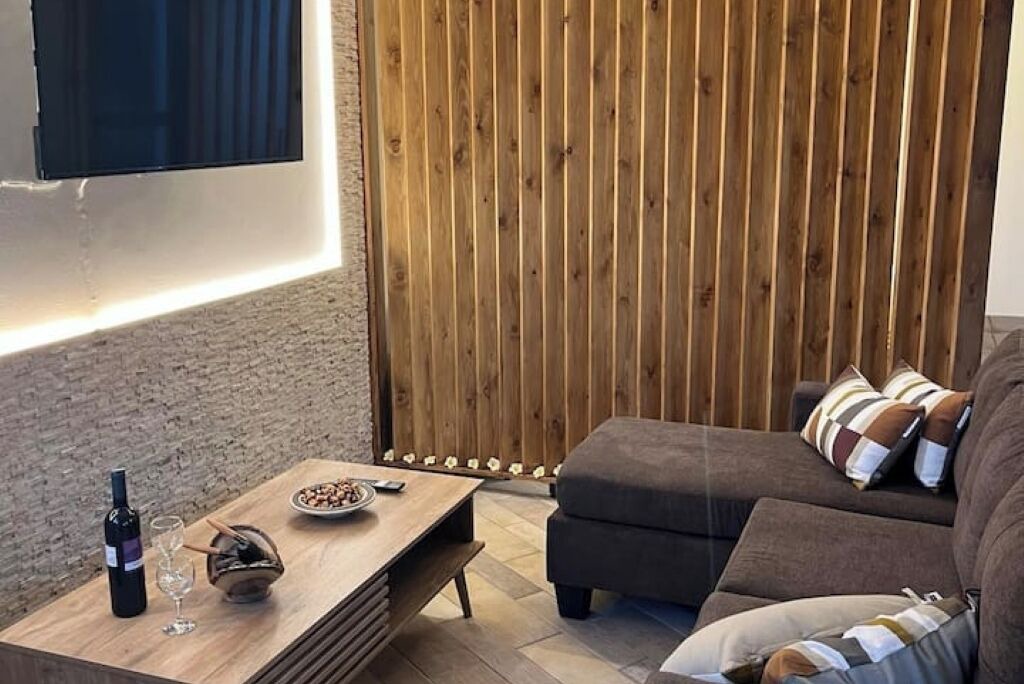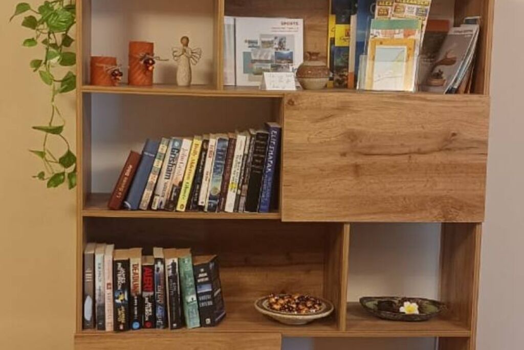 The living room has a comfortable lounge area a smart TV where you can watch Netflix on your own account. Books and games are available. The space is fully air conditioned.