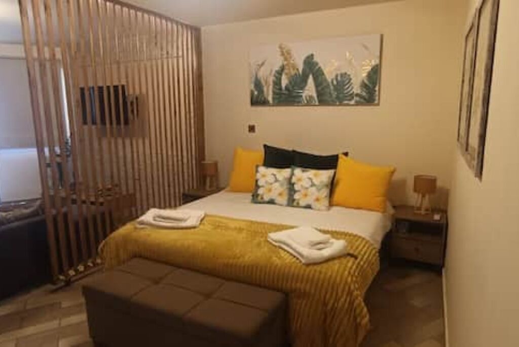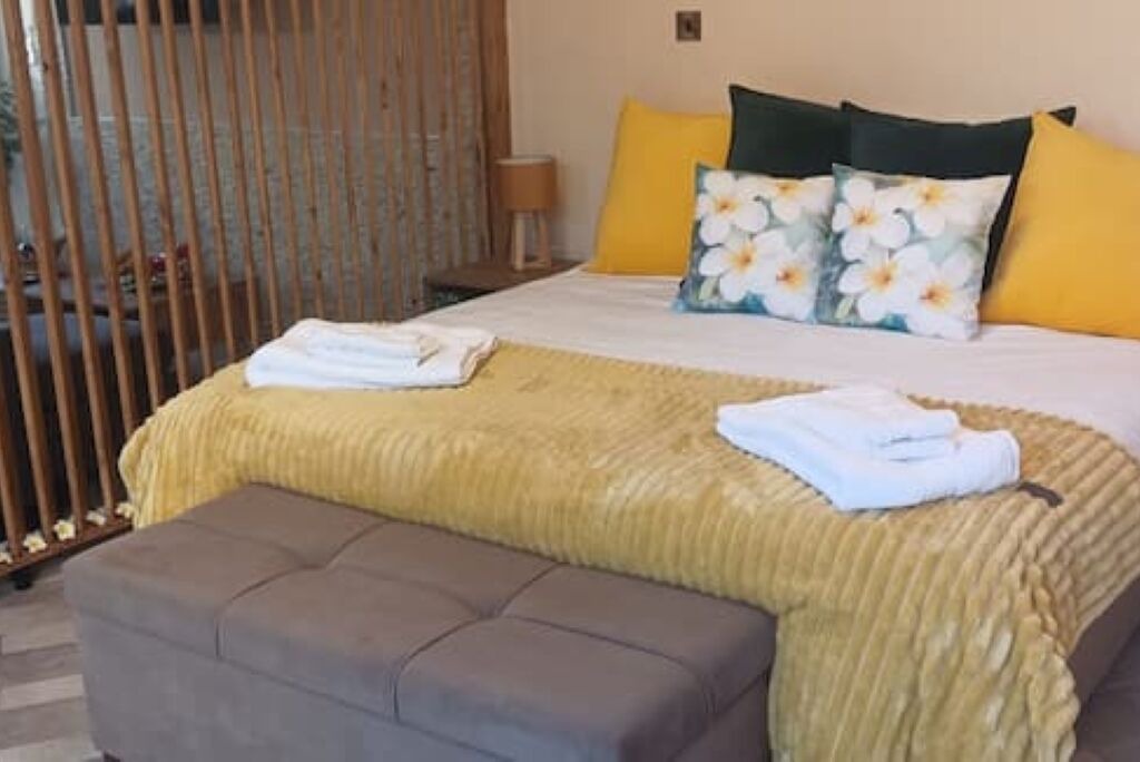 The bedroom area has a super king bed which can be divided into two single beds. All bedding and linen is provided.