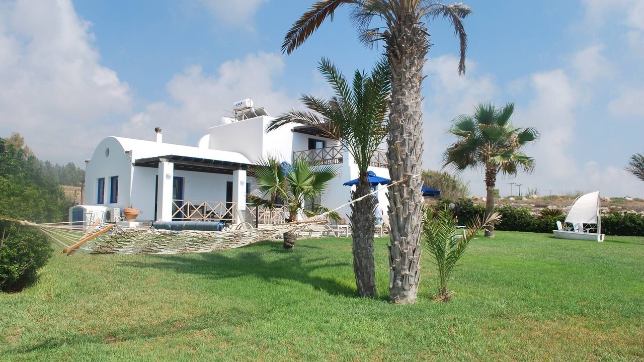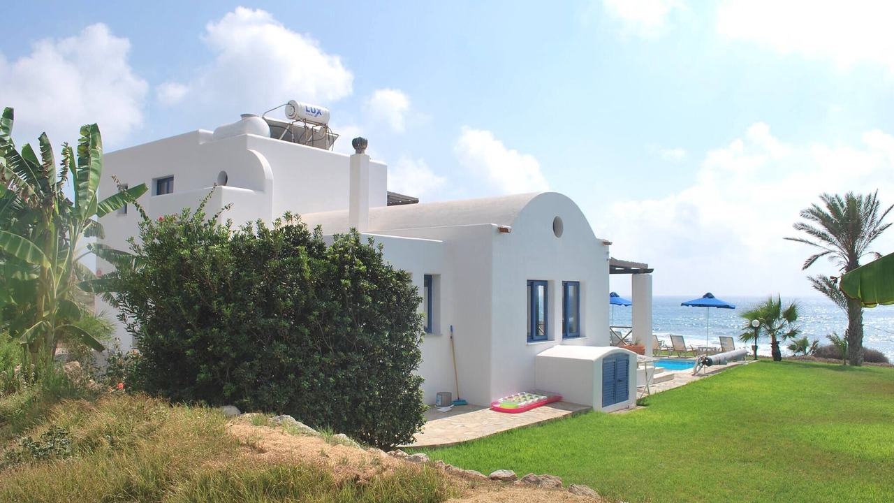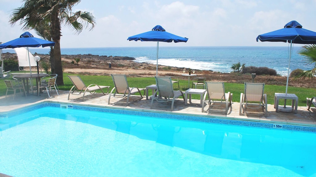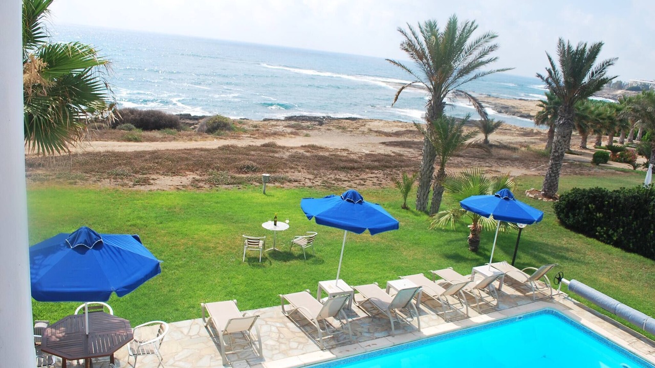 Relax with the whole family at this peaceful place to stay. This lovely villa situated exactly on the first sea-line on the Paphos coast, just 15 meters only from the Mediterranean shoreline. The villa has it's own private swimming-pool, patio and barbeque. The pool with walk-in steps is directly in front to the sea.