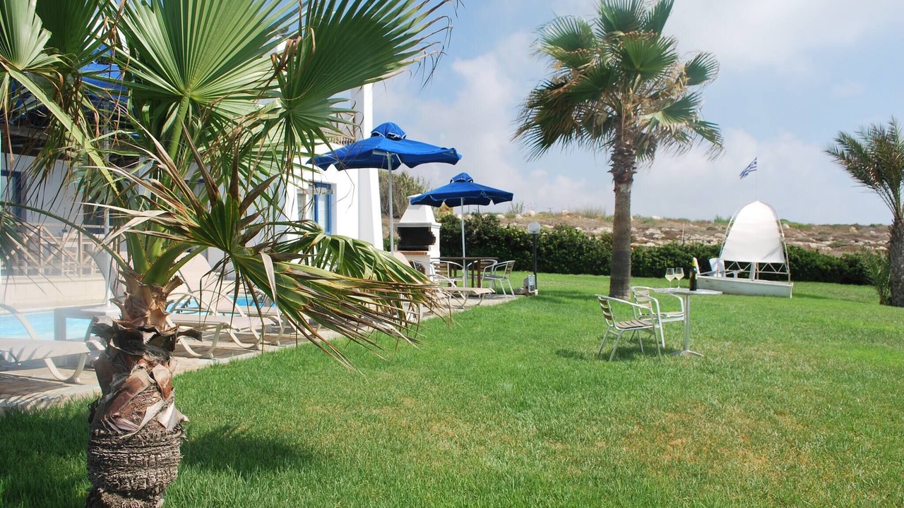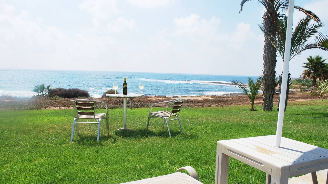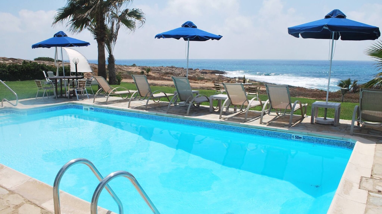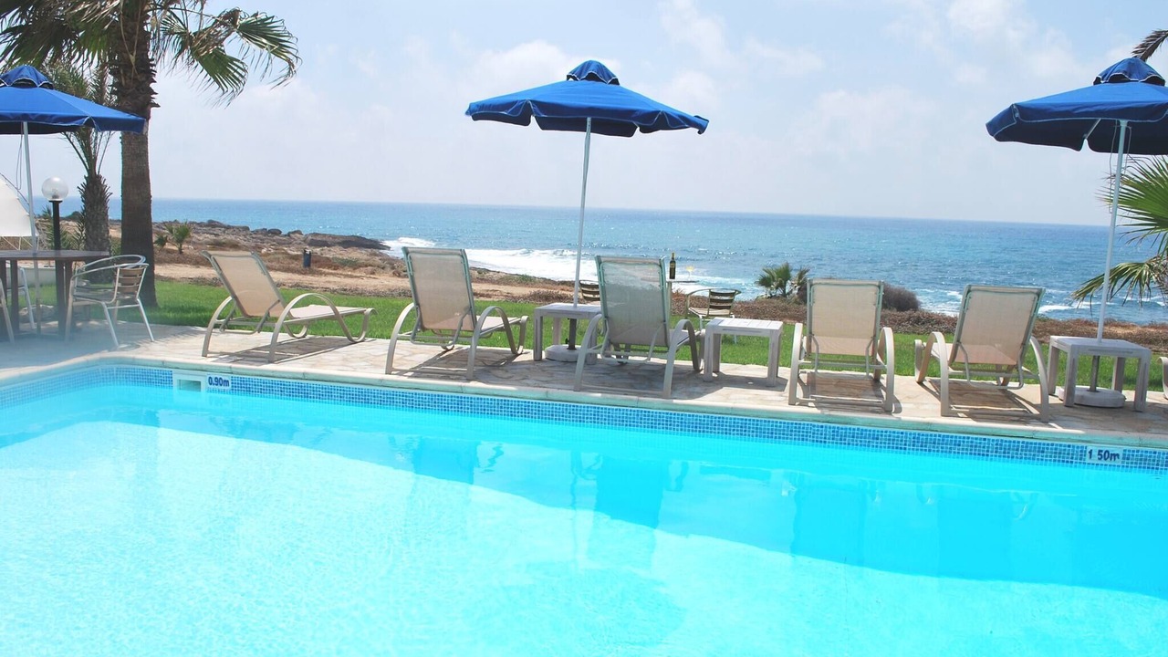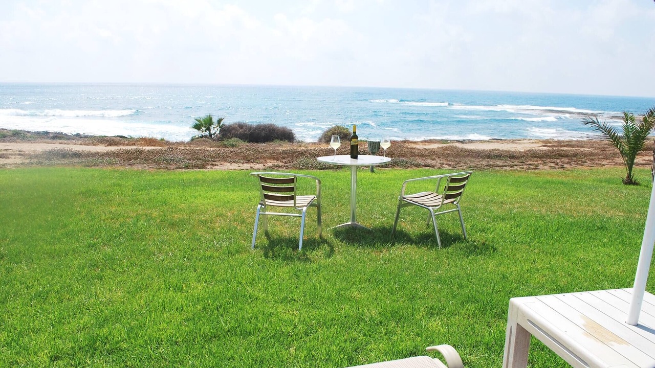 Relax with the whole family at this peaceful place to stay. This lovely villa situated exactly on the first sea-line on the Paphos coast, just 15 meters only from the Mediterranean shoreline. The villa has it's own private swimming-pool, patio and barbeque. The pool with walk-in steps is directly in front to the sea.
