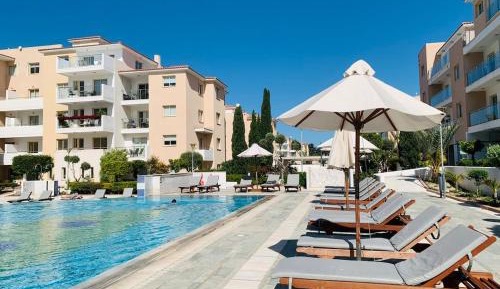 Spacious 2BR Elysia Park Apartment, Pool, Gym, Large Balcony, Center is located in Paphos.