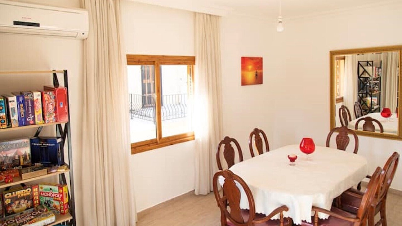 The Games room is bright and beautiful, with a large selection of board games, air-con & a large dining table with chairs.