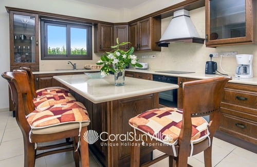 What's more the villa has a large pool and mature plants and trees, which makes it perfect for a relaxing holiday! From the first-floor balconies you can enjoy pleasant sea views. The villa has a pool table and table tennis for everyone to enjoy. The authentic village of Polis, with its charming old towns, shops, local tavernas and beach, is just short drive away. Air conditioning/heating in all bedrooms, pool heating and WiFi are included in this 4-bedroom villa