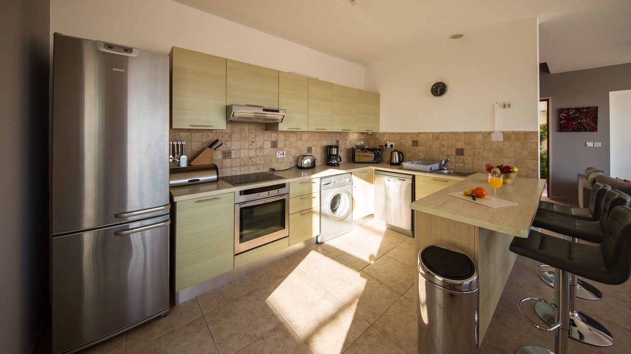 The fully equipped kitchen offers all the essentials you will need to enjoy the property to its most, with all the mod cons you would expect to find. The addition of 3 stools along the breakfast bar of the kitchen area offers you, as guests the ability to grab a snack or chill with a cool drink in your hand as you chat with the family members while food is prepared. The property has been fitted throughout with air-conditioning units in all the living and sleeping areas to allow you to have the maximum comfort during your stay.