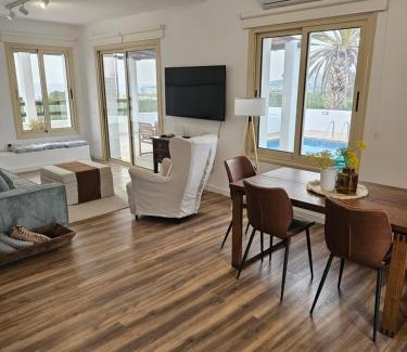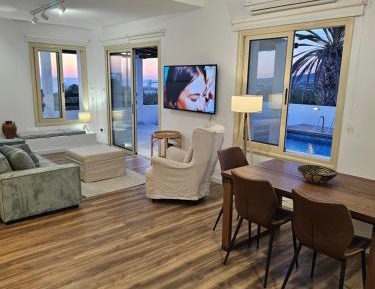 This 3 Bedrooms Villa is suitable for tourists and travelers. It has several amenities that would guarantee your comfort. These amenities include: Parking, View, Oceanfront, and several others. This is a 4 star rated property and has over 20 reviews with the average score of 10 . Coming to Paphos and needing a place to stay? Be it for work or for leisure, consider staying at this Villa for your next visit, you will surely love it.