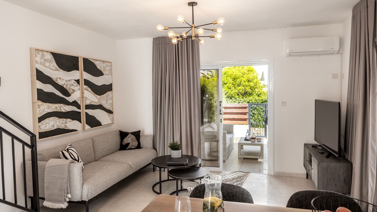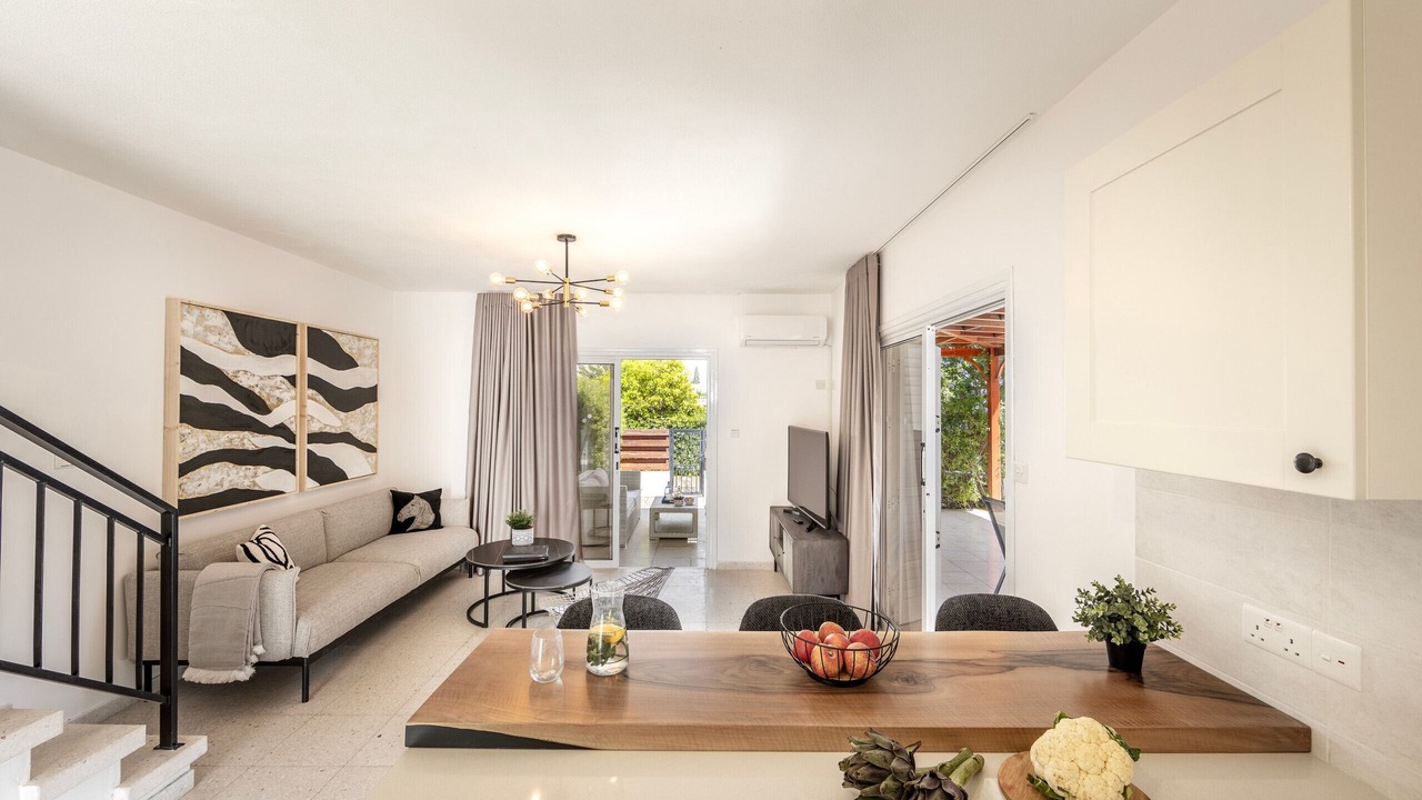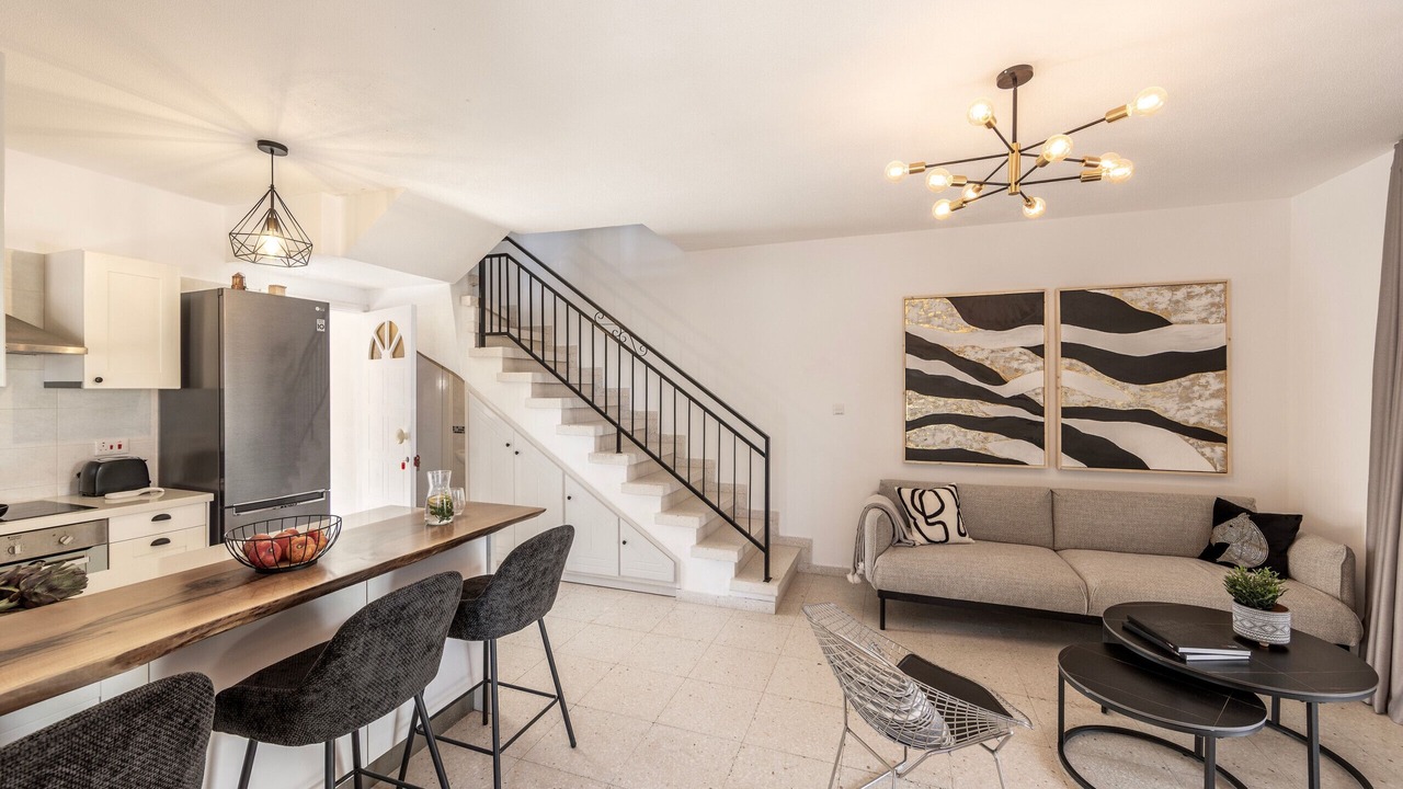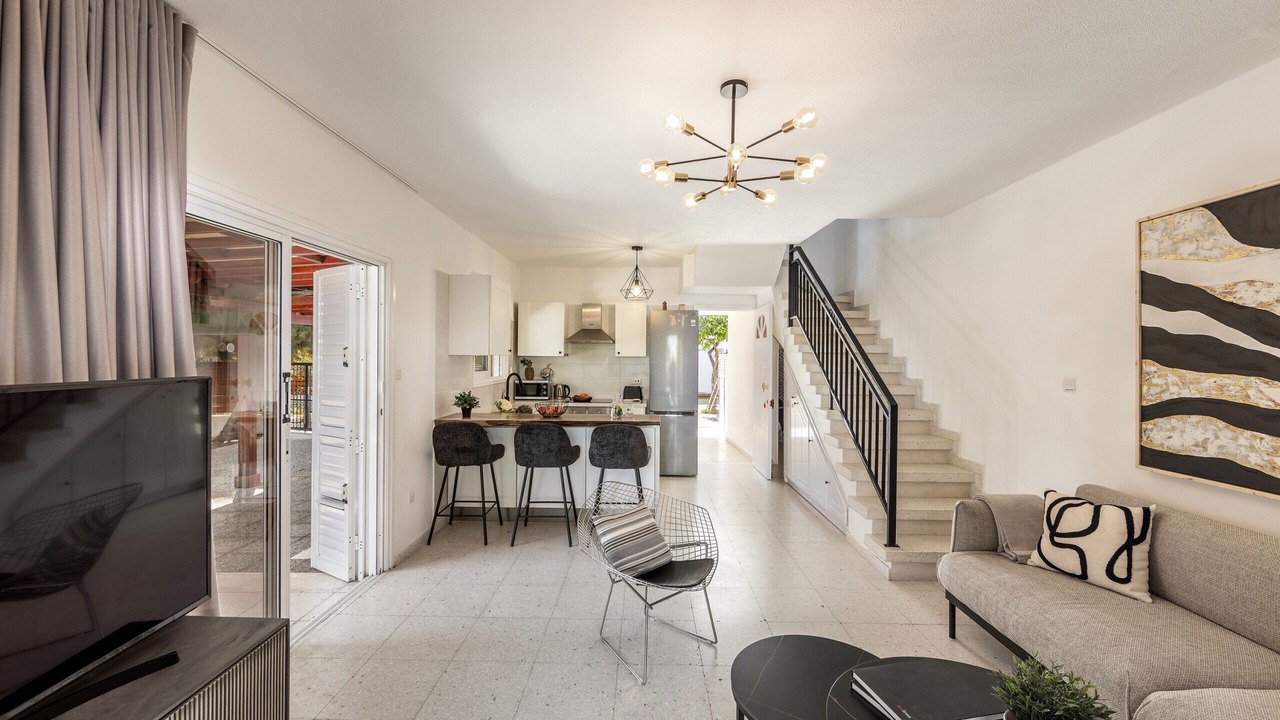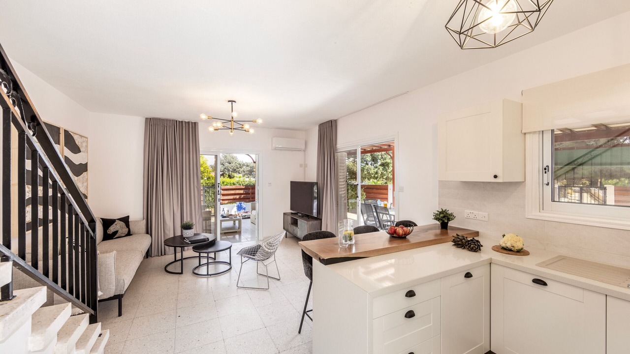Villa Marina is a two bedroom semi-detached house located in a small development on Kiti Beach. The house has been fully renovated in 2025 and offers all modern appliances and equipment. The ground floor features a modern kitchen, an open plan living room and dinning area that leads to an outside patio equipped with table, chairs and an outdoor settee. The master bedroom on the first floor offers a large double bed, the second bedroom offers comfortable twin beds. Spacious and clean family bathroom with the shower is located between the bedrooms to share.