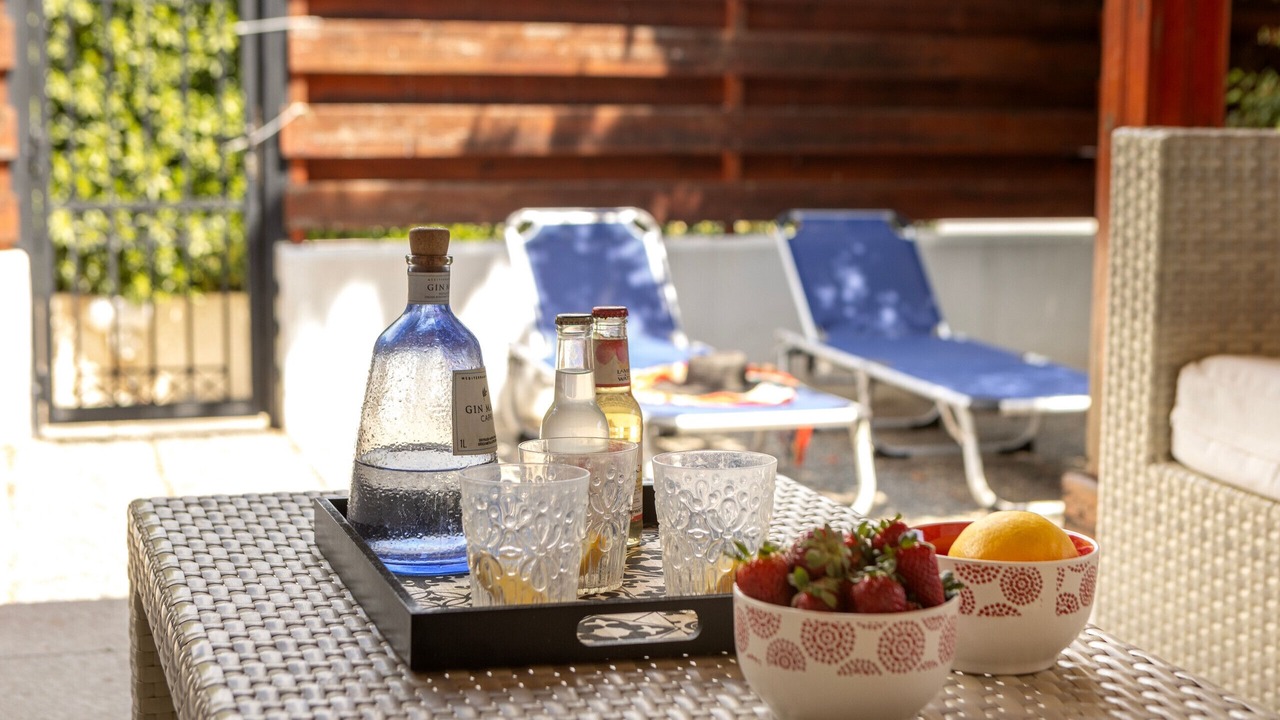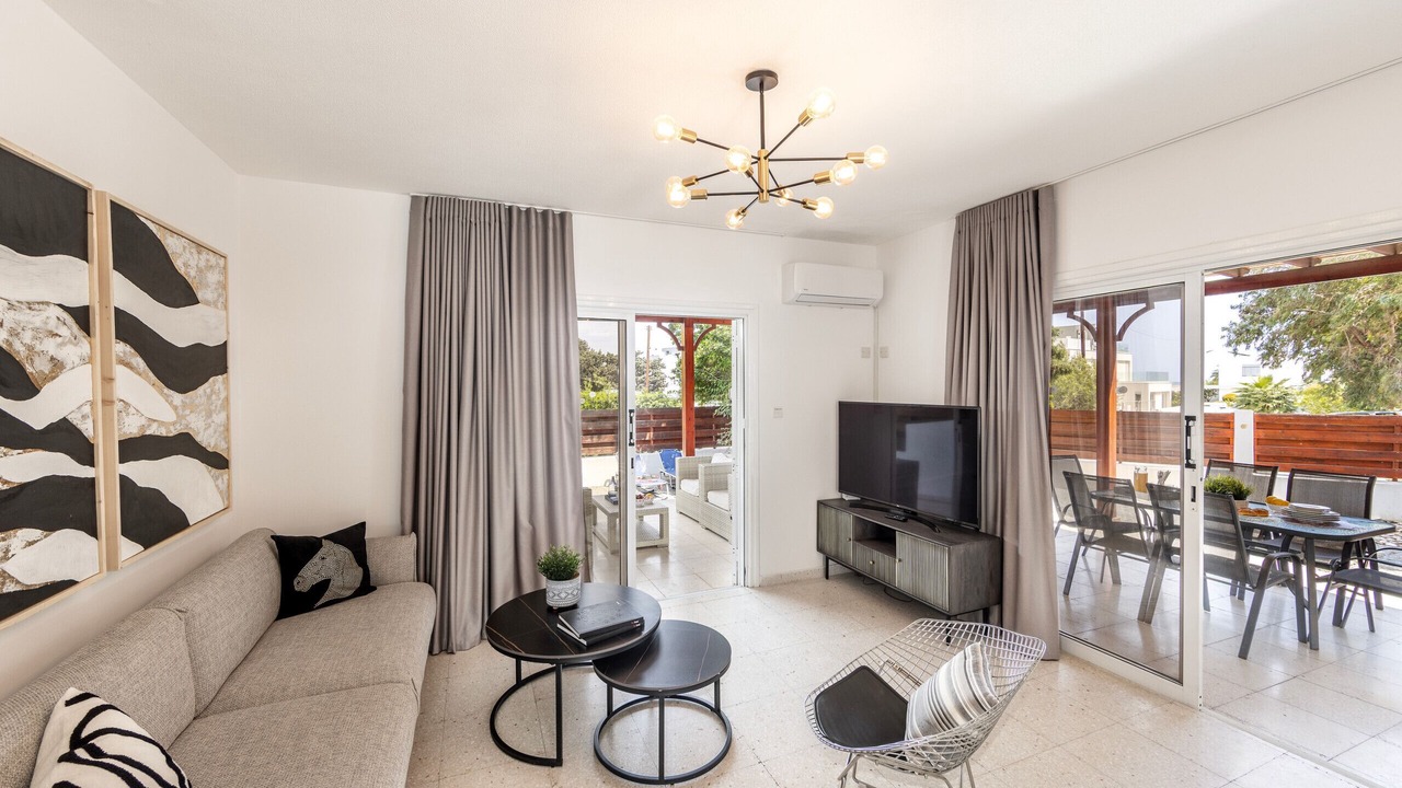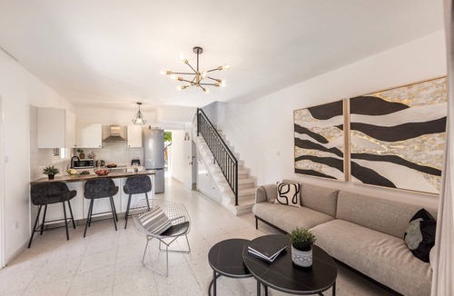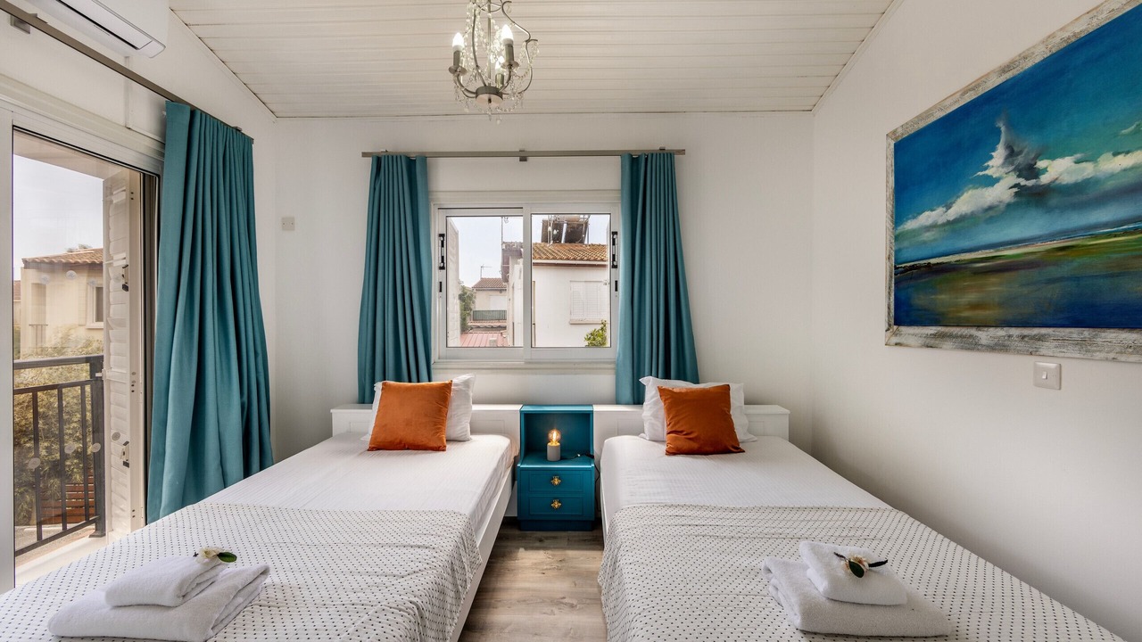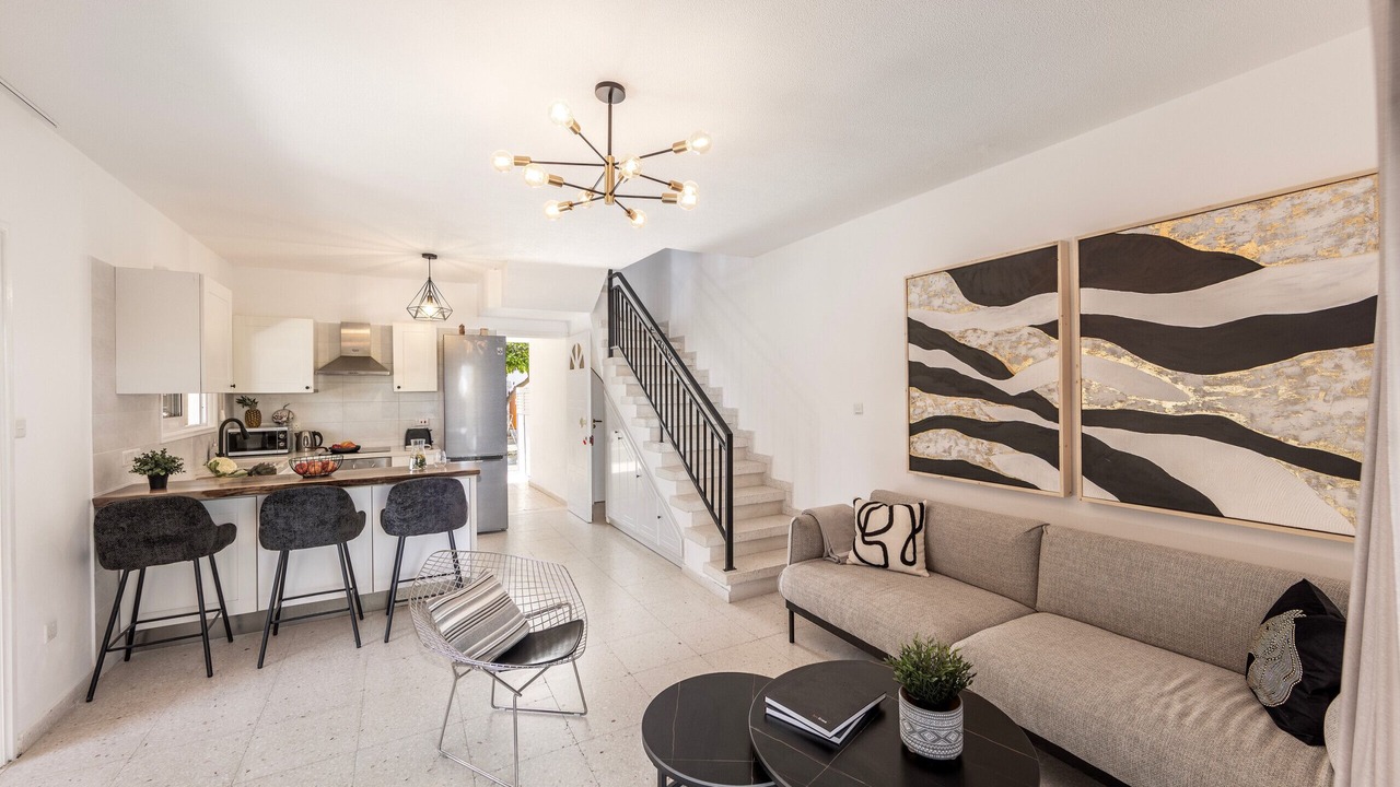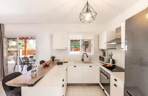 Villa Marina is a two bedroom semi-detached house located in a small development on Kiti Beach. The house has been fully renovated in 2025 and offers all modern appliances and equipment. The ground floor features a modern kitchen, an open plan living room and dinning area that leads to an outside patio equipped with table, chairs and an outdoor settee. The master bedroom on the first floor offers a large double bed, the second bedroom offers comfortable twin beds. Spacious and clean family bathroom with the shower is located between the bedrooms to share.