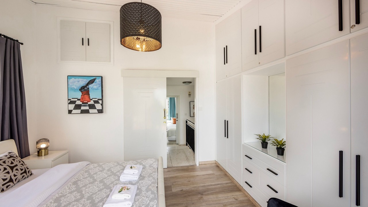 The beach in front of the villa is a quiet one, visited mostly by local population and is literally right on your doorstep. Large supermarkets and many restaurants can be found within 5 minutes drive.