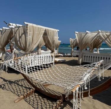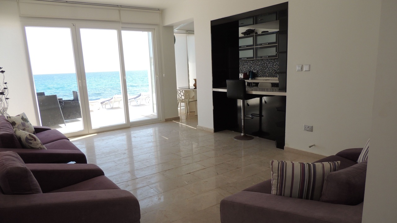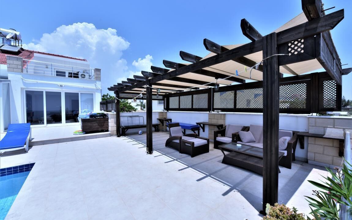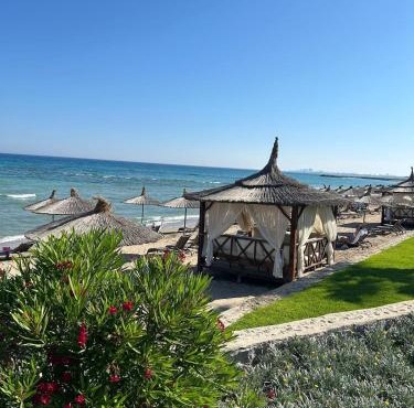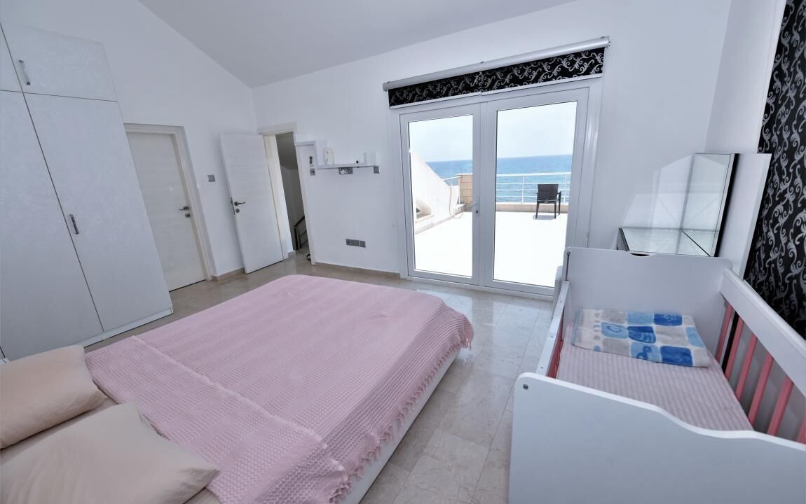 Villa Moonlight has a unique feature of being a new Villa on the beach and has a total of 7 bedrooms. The villa has a lovely front garden with colourful, scented flowers and jasmine trees. At the rear of the villa, there is large family terrace with an infinity pool, overlooking the beach/sea. There is a Pergola with dining tables and chairs, together with an authentic stone barbecue. There are bench seating areas, plenty of sun beds (with individual sun umbrellas), a swing chair, outdoor coffee table and chairs and an outdoor sofa group. Our home can be tailored and adapted towards each booking giving the flexibility to add as many rooms according to our guest's needs. It is perfectly located and only 8 minutes away (walking distance) from the bars, restaurants and supermarkets. Villa Moonlight is furnished to a luxury and high standard complete with all mod cons and versatile that can be adapted to suit different group sizes and guest's needs on request. (Please note that the house has 5 bedrooms but there are two extra bedrooms, lounge and kitchen for larger group sizes). Please check with the owner if you need the extra space for your group size. Maximum sleeping capacity 14 guests. 2 separate families can stay together, for example. But couples are welcome too, as the villa has an amazing romantic setting! The Villa is on the main road to Karpaz peninsula. The back of villa sits on it's own beach which is very peaceful and calming. So, the villa is perfect for relaxation. The famous karate tortoises leave their eggs in the sand, on the beach, at the back of the villa, in the month of May. The villa also has a caretaker in a separate flat, he can help with any queries and if there are any problems, can fix quickly.