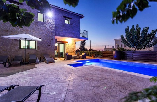 Featuring a garden, Villa Nikolina features accommodations in Drousha. This property offers access to a balcony, free private parking, and free Wifi. The villa offers an infinity pool and private check-in and check-out. Offering a terrace and sea views, the spacious villa includes 5 bedrooms, a living room, flat-screen TV, an equipped kitchen, and 6 bathrooms with a walk-in shower and a bath. Guests can take in the views of the mountain from the patio, which also has outdoor furniture. For added privacy, the accommodation has a private entrance and soundproofing. Guests can make the most of the warm weather with the property's barbecue facilities. Minthis Hill Golf Club is 15 miles from the villa, while Tombs of the Kings is 17 miles away. Paphos International Airport is 23 miles from the property.