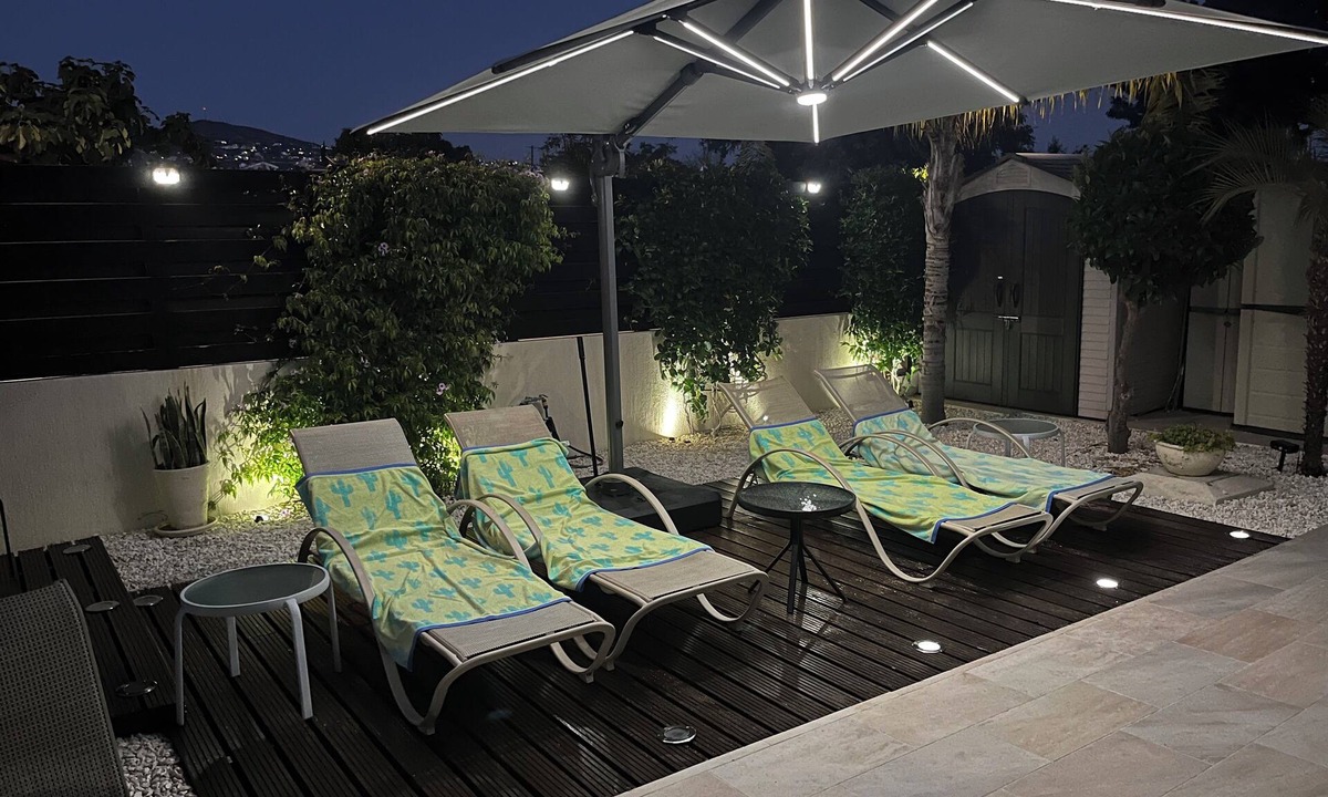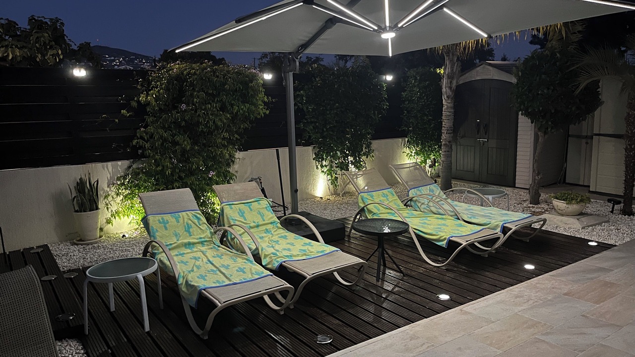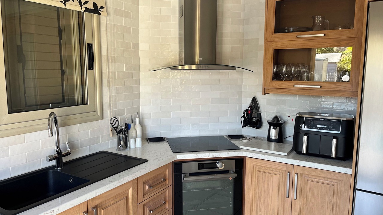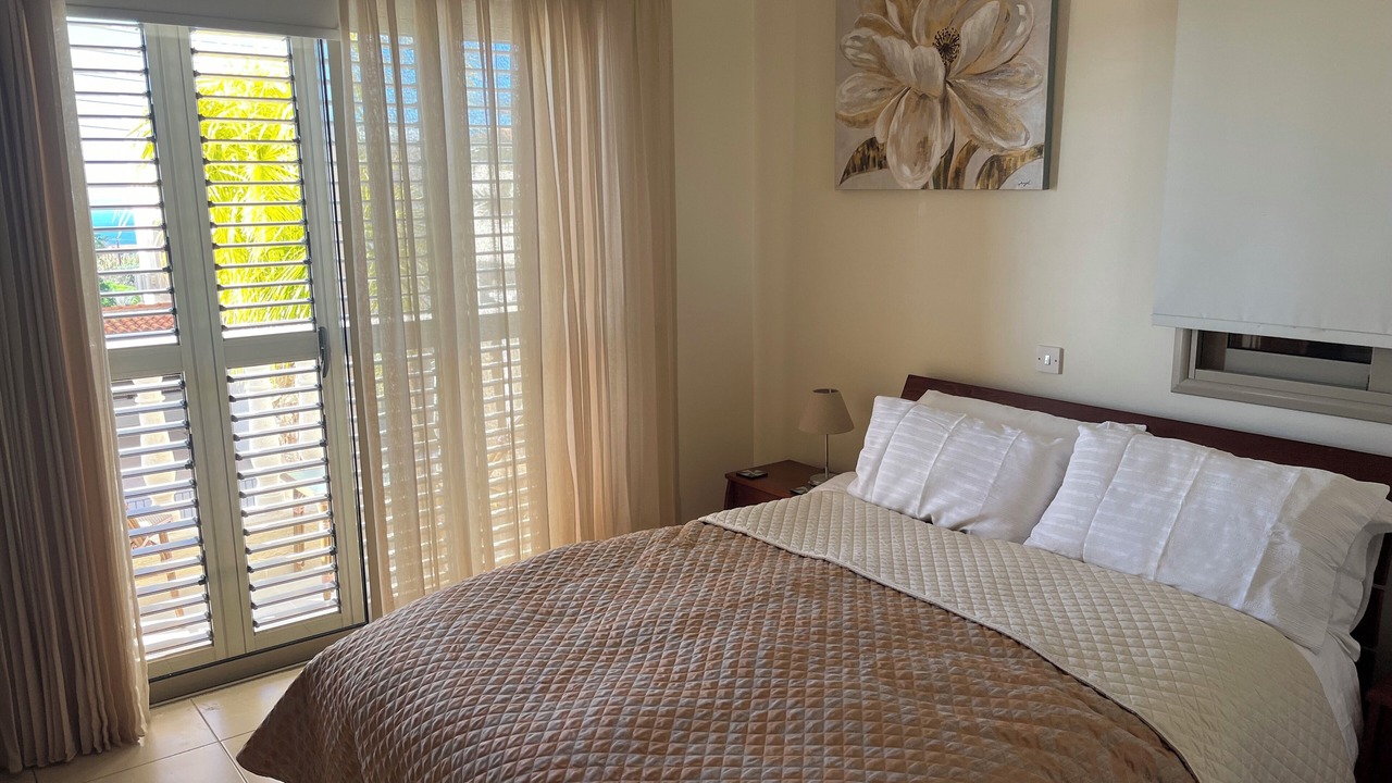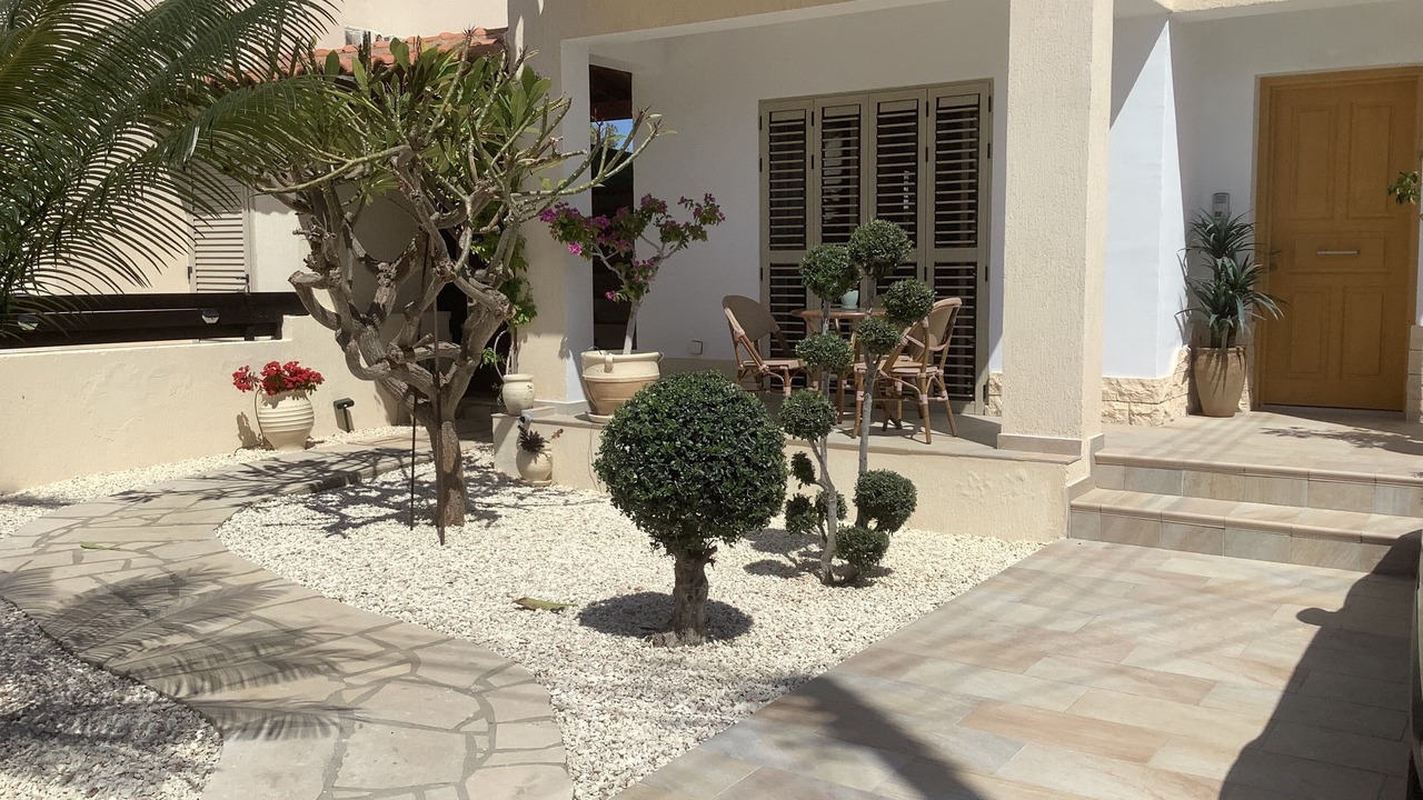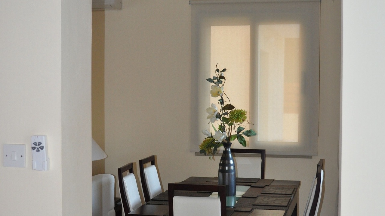 Villa Tala View lies in a beautiful setting in the small sleepy village of Kissonerga, amid lemon groves and banana plantations. Our three bedroom link detached villa, is set in landscaped gardens with a large 8 x 4m private swimming pool with Roman Steps, giving the feel of paradise. Beyond are the fantastic views of the Hills of Tala. This superb holiday accommodation contains every convenience for a comfortable and memorable holiday. Air-con, ceiling fans and fly-screens are provided. Shutters all around have been installed recently (January 2013) all designed to keep you nice and cool when inside. A complimentary welcome pack will greet you on arrival. Every window (June 2013) has a fly screen including bathrooms and en-suite, now the refreshing breezes can circulate inside and the horrible little whatsits will have to stay outside.