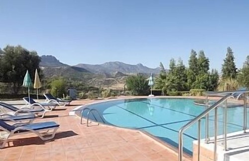 Mountainview villa is an exclusive, spacious,easy access bungalow with an amazing panoramic view of five finger mountain,the alagadi nature area and the sea.The villa is in a private gated estate of 5 large private villas. This luxurious villa has four bedrooms each with en suite bathrooms with fully fitted wardrobes and has full air con and central heating throughout .The large open plan living/dining area is suitable for large parties on vacation. The property has a fully equipped kitchen with breakfast bar, utility room and separate WC with marble floors throughout. Set within 1 acre of beautifull extensive gardens this villa allows you total privacy and is right next to Esentepe golf and country club and only five minutes from alagadi beach. The 9 meter round infinity pool and jacuzzi with a shallow end is ideal for families. If your looking for an ideal family holiday or maybe a peaceful getaway, mountainview villa will be perfect for you.